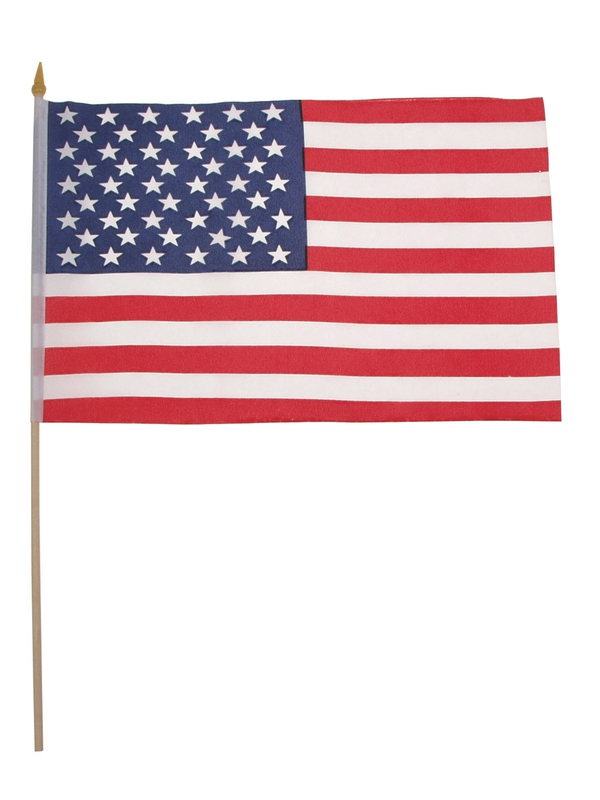 Vlajka USA na dřevěné žerdi, rozměr: 30 x 45 cm. Vlajka je vyrobena z polyesteru a je natažen na dřevěné rukojeti, dá se tak kamkoli zapíchnout, případně zavěsit.