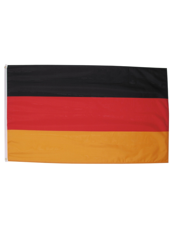 Vlajka Německa, materiál: polyester, velikost:. 90 x 150 cm, se zesílenou páskou na okraji a kovovými očky. | ||