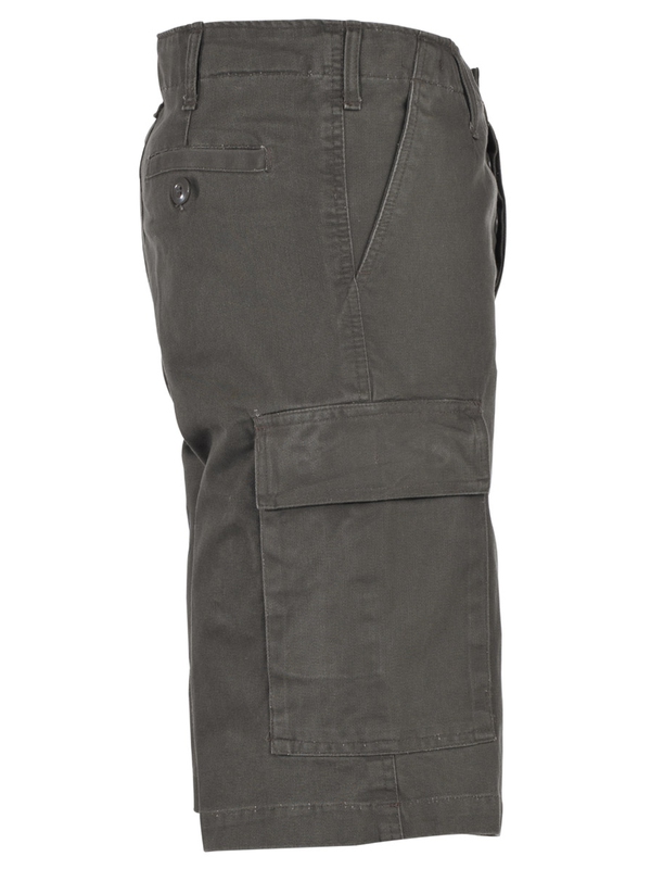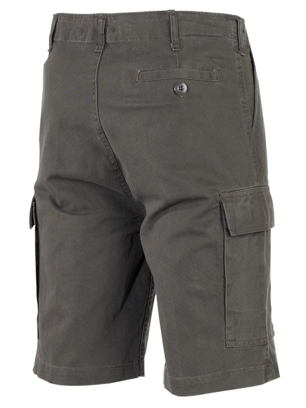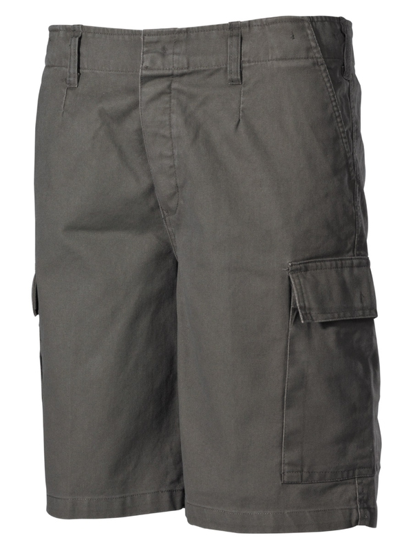 Kraťasy - kopie Bundeswehr - sepraný vzhled. Kraťasy v olivové barvě mají 2 přední kapsy, 2 zapínací zadní kapsy a 2 velké zapínací kapsy na stehnech. Obvod pasu lze zmenšit pomocí bočních pásků. Materiál: 100% bavlna. | ||