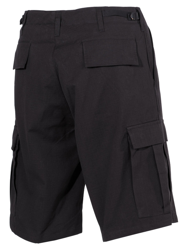 Černé kraťasy - originál střih, barva a materiál dle bermud US Army. Kraťasy mají 2 přední kapsy, 2 zapínací zadní kapsy, 2 velké zapínací kapsy na stehnech. Obvod pasu lze zmenšit pomocí bočních pásků (o cca 10cm). Materiál: 100% bavlna - Rip Stop. | ||