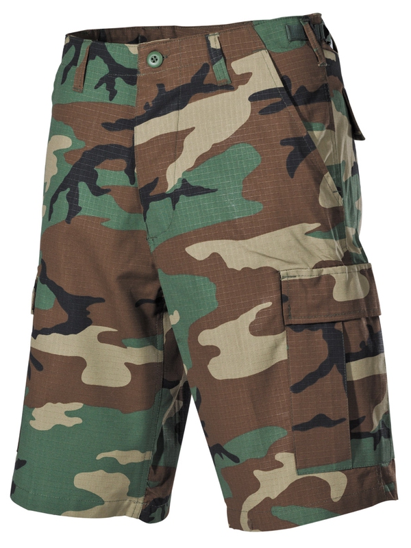 Kraťasy - originál střih, barva a materiál dle bermud US Army. Barevné provedení woodland. Kraťasy mají 2 přední kapsy, 2 zapínací zadní kapsy, 2 velké zapínací kapsy na stehnech. Obvod pasu lze zmenšit pomocí bočních pásků (o cca 10cm). Materiál: 100% bavlna -Rip Stop. | ||