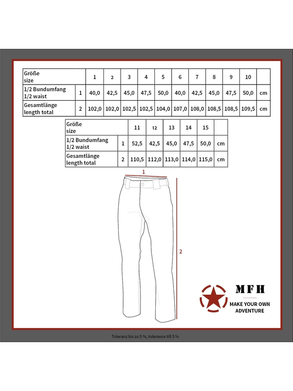 BW polní kalhoty olivové. Replika vojenských Bundeswehr kalhot. Dvě boční kapsy, dvě zadní kapsy a dvě boční kapsy s patkou na stehnech. 100% bavlna. | ||