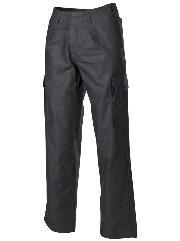 BW polní kalhoty černé - nadměrné velikosti. Replika vojenských Bundeswehr kalhot. Dvě boční kapsy, dvě zadní kapsy a dvě boční kapsy s patkou na stehnech. 100% bavlna. | ||
