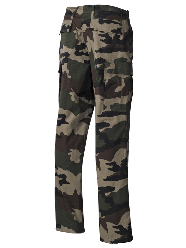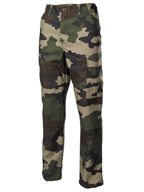 US bojové kalhoty BDU, materiál Rip Stop, CCE-camo. Klasické US ARMY kalhoty v originálním designu mají dvě boční kapsy, dvě zadní s klopou a dvě boční s klopou na noze. Nohavice na utažení, nastavitelný pás, dvojitá kolena, zapínání na knoflíky, materiál: 100% bavlna