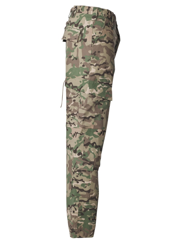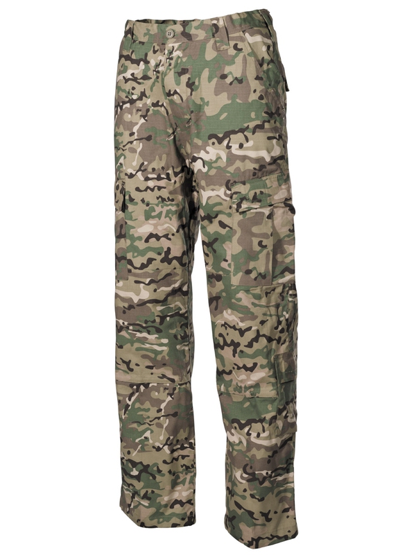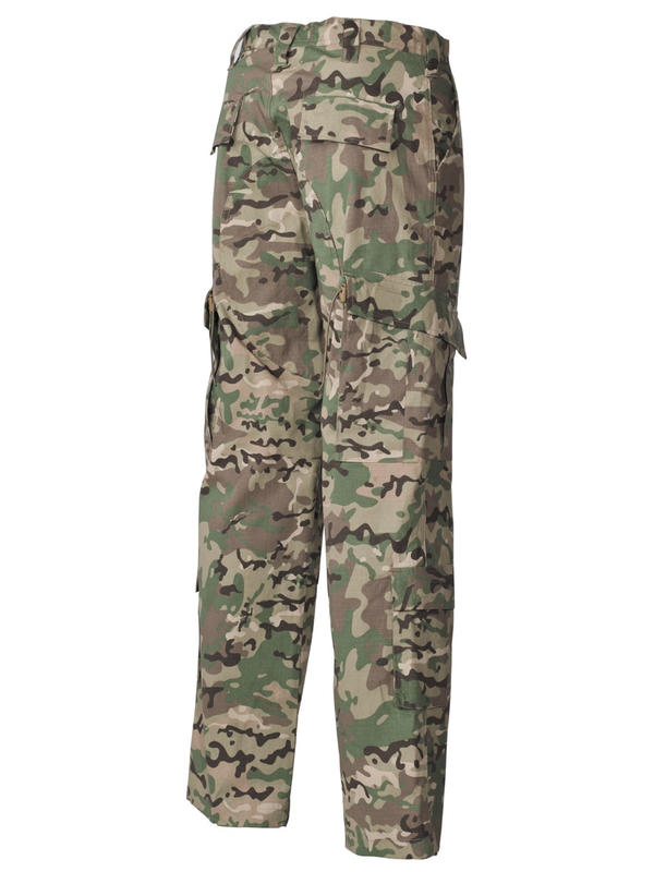 Originál kalhoty americké armády z bojové uniformy, RIP STOP, kapsy s klopou boční s uzavíráním na suchý zip, dvě postranní kapsy se suchým zipem po obvodu kolena, dvojitá kolena, dvojitý zadek, šňůrka na konci nohavic, materiál: 100% bavlna.