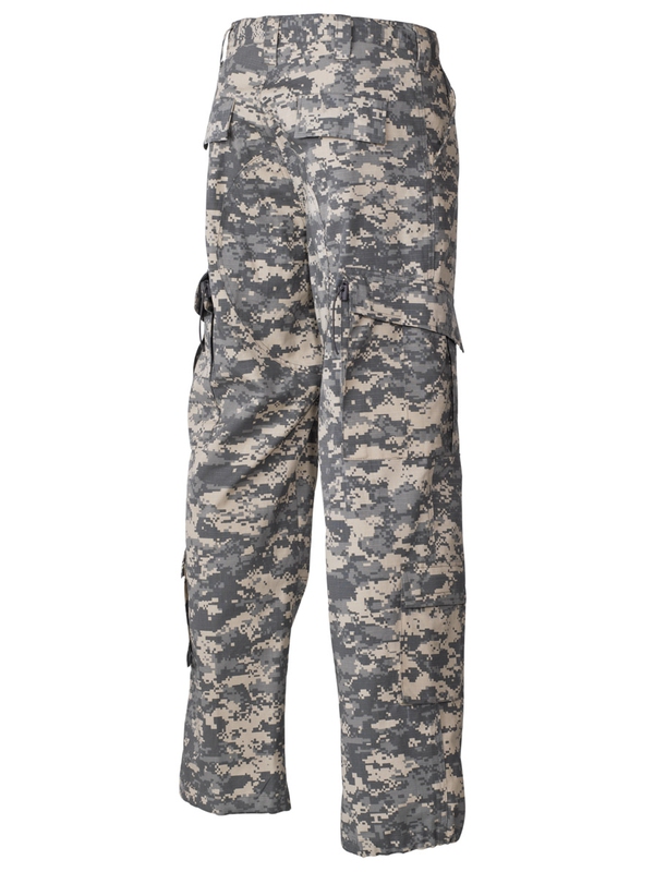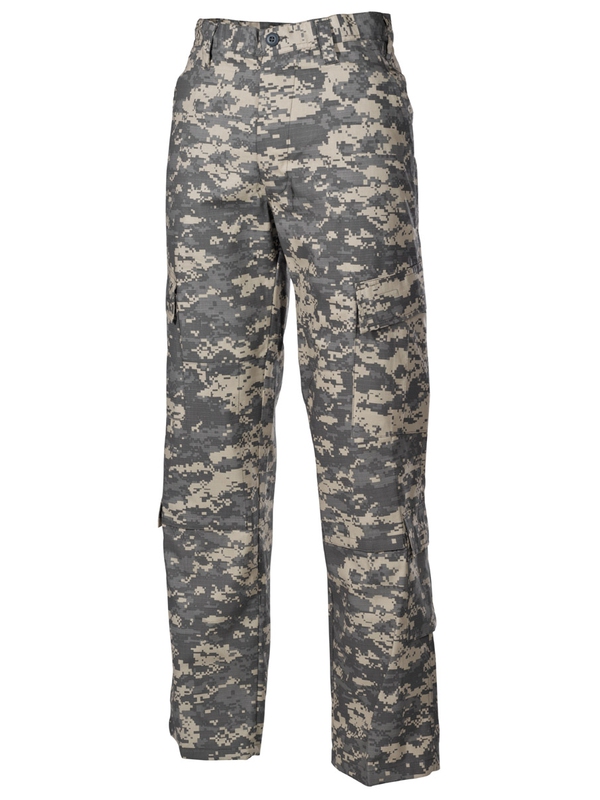 Kalhoty US ACU RIP STOP, 2 zadní kapsy, 2 přední, 4 boční kapsy, dvojitá látka na kolenou a na sedací části, stahovací pásky na boku, 65 % Polyester, 35 % Bavlna. V úpravě AT digital. | ||