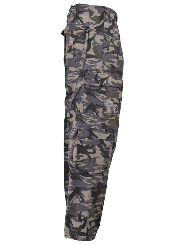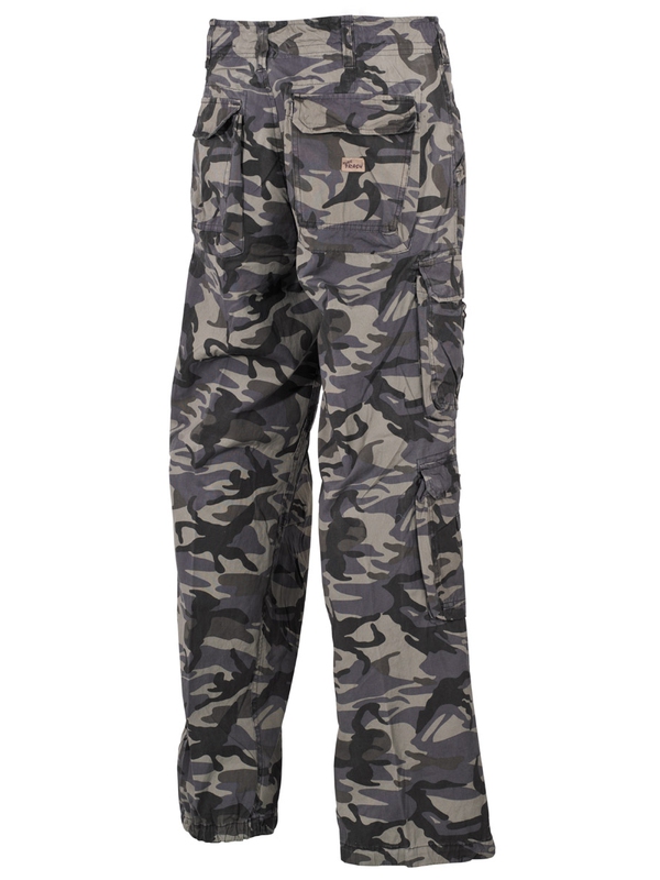 Módní kalhoty "Defense" v designu combat camo PT s mnoha kapsami ze 100 % bavlny. Praktické kalhoty mají zapínání na knoflíky, široká poutka pro opasek, kapsy se zapínáním na druky, dvě našité kapsy na zadní straně, dvě všité boční kapsy vpředu, čtyři na bocích nohavic, stahovací tkanice na nohavici.