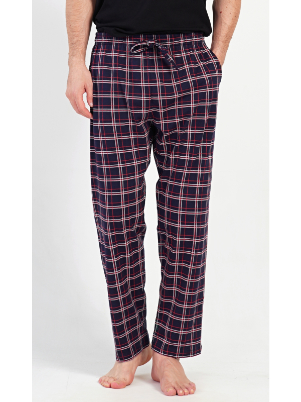 Pánské pyžamové kalhoty Karlos. Pánské bavlněné pyžamové kalhoty Karlos. Kostkované kalhoty mají v pase gumu, šňůrku na stažení a praktické kapsy. Mateiriál s podílem bavlny 100% je příjemný a poddajný na dotek. Pokyny pro údržbu: - 100% bavlna Míry naměřené na výrobku: