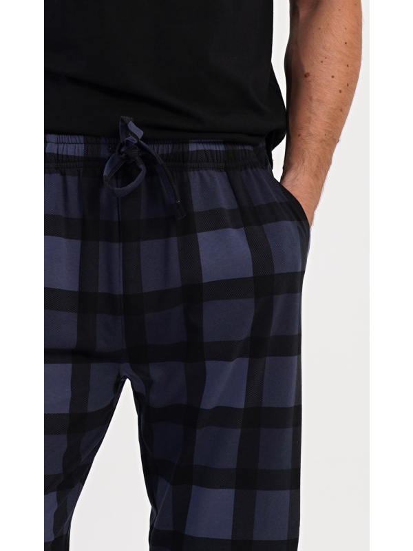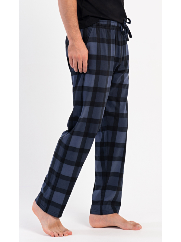 Pánské bavlněné pyžamové kalhoty Filip. Kostkované kalhoty mají v pase gumu, šňůrku na stažení a praktické kapsy. Mateiriál s podílem bavlny 100% je příjemný a poddajný na dotek.