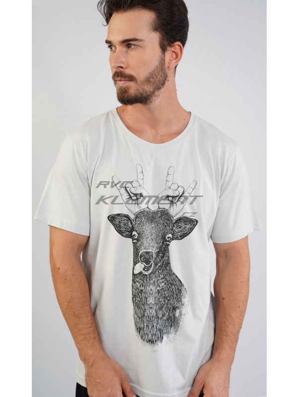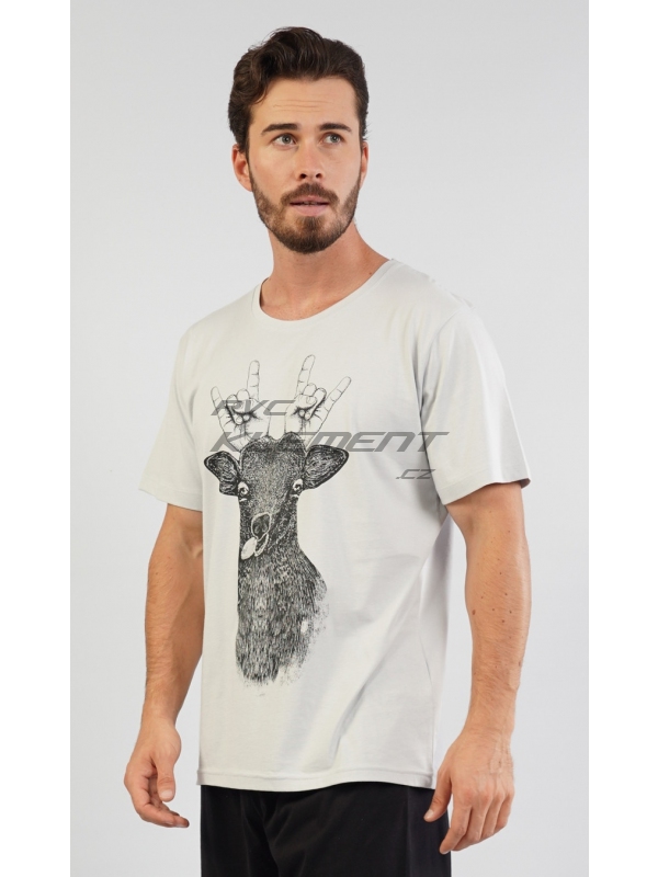 Pánské bavlněné pyžamo šortky Jelen. Pánské pyžamo se skládá z trička s krátkým rukávem a krátkých šortkových kalhot. Na jednobarevném tričku je vtipný obrázek jelena s lidskýma rukama místo paroží. Kostkované kalhoty jsou bez kapes, mají gumu a šňůrku na stažení. Použitý materiál je příjemný a poddajný na dotek.