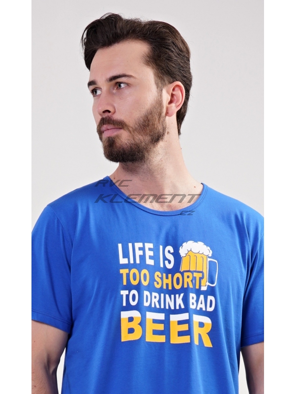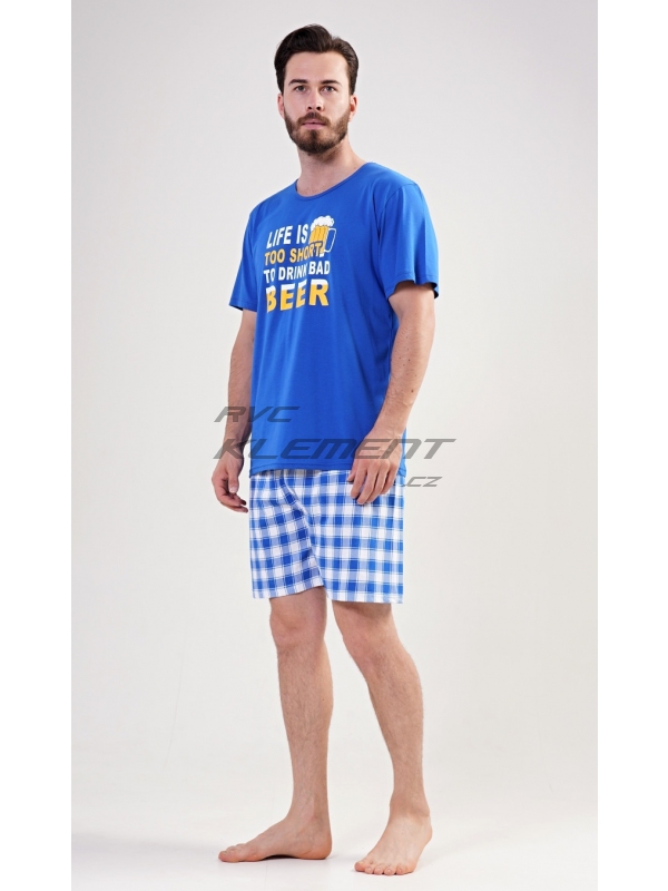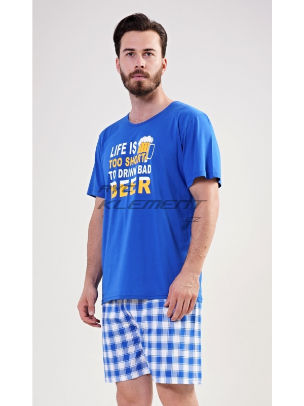 Pánské bavlněné pyžamo šotky Life is beer. Pánské pyžamo se skládá z trička s krátkým rukávem a krátkých šortkových kalhot. Na tričku je nápis Life is too short to drink bad beer. Výrazné tričko vhodně doplňují kostkované kalhoty. Šortky jsou bez kapes, mají gumu a šňůrku na stažení. Použitý materiál s podílem bavlny 100% je příjemný a poddajný na dotek. Pyžamo je vhodné i na denní nošení.