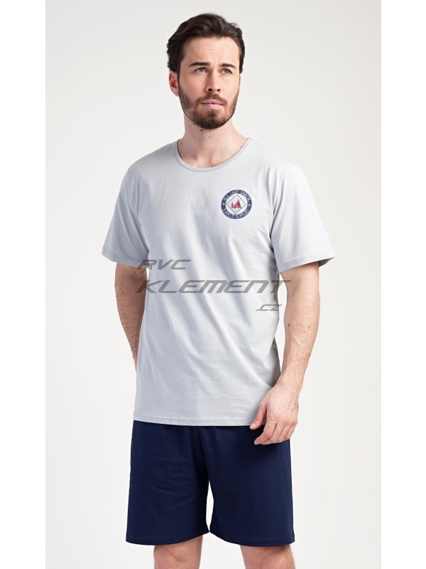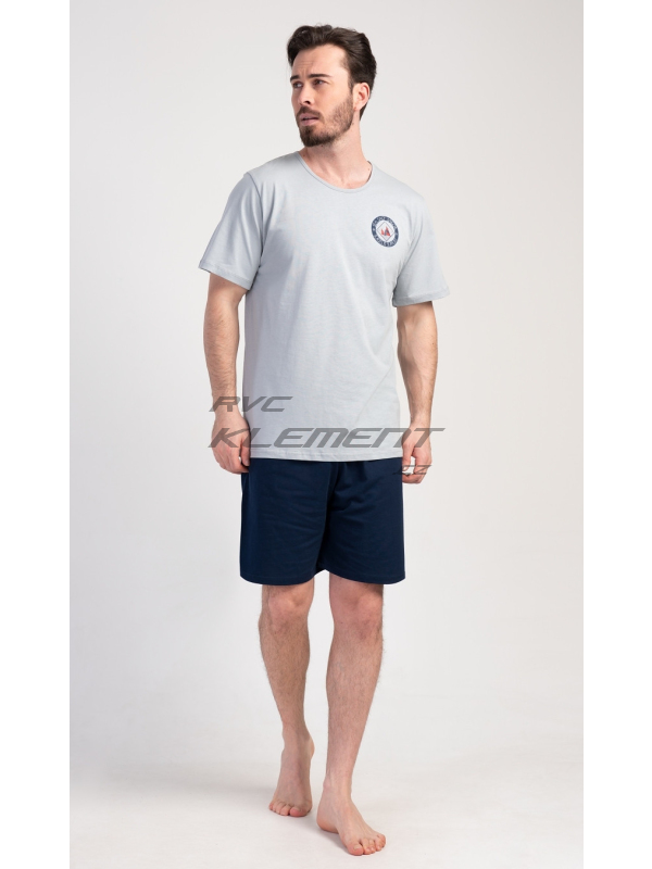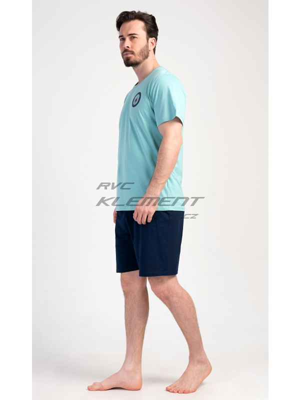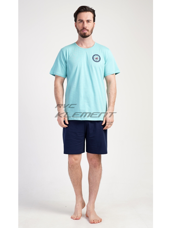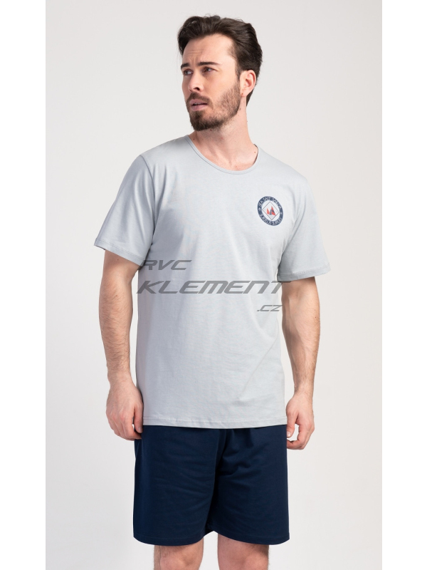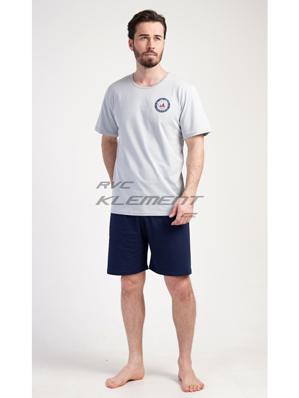 Pánské pyžamo šortky Sea. Pánské bavlněné pyžamo šortky Sea. Pánské pyžamo se skládá z trička s kulatým výstřihem a krátkých šortkových kalhot. Tričko s krátkým rukávem má na hrudi decentní obrázek s námořnickým motivem. Doplňují jej jednobarevé krátké kalhoty, které mají v pase gumu a šňůrku na stažení.Šortky jsou bez kapes.. Použitý bavlněný materiál je příjemný a poddajný na dotek. Pyžamo je vhodné i na denní nošení. Pokyny pro údržbu: - 100% bavlna Míry naměřené na výrobku: