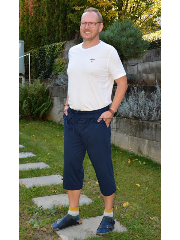 Pánské bavlněné kapri kalhoty Adam. Pyžamové kalhoty v délce pod kolena jsou vhodné na spaní i pro všechny volnočasové aktivity. Mají v pase gumu, šňůrku na stáhnutí a praktické kapsy. Mateiriál s podílem bavlny 100% je příjemný a poddajný na dotek.