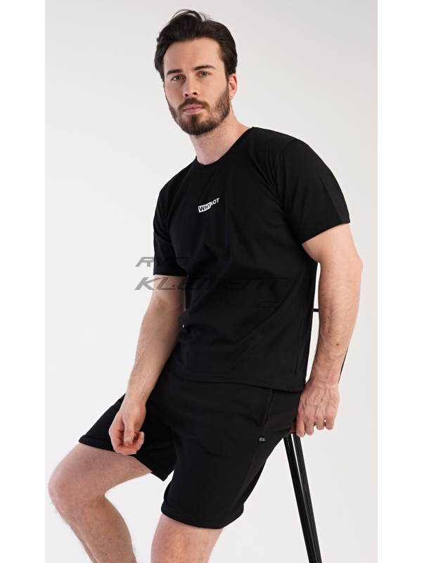 Pánská sportovní souprava Thomas. Pánská souprava se skládá z trička s krátkým rukávem a krátkých šortkových kalhot. Tričko s kulatým výstřihem zdobí drobný nápis. Jednobarevné šortky mají v pase gumu, šňůrku na stažení a praktické kapsy. Použitý materiál je příjemný a poddajný na dotek. Obsah bavlny u trička je 100% a u šortek 70%. Tuto multifunkční soupravu využijete na sport, volnočasové aktivity i na spaní.