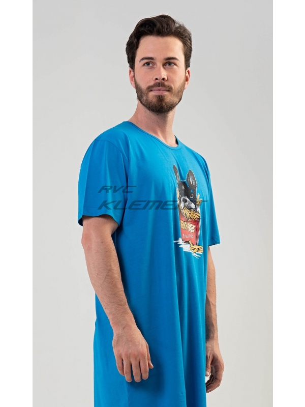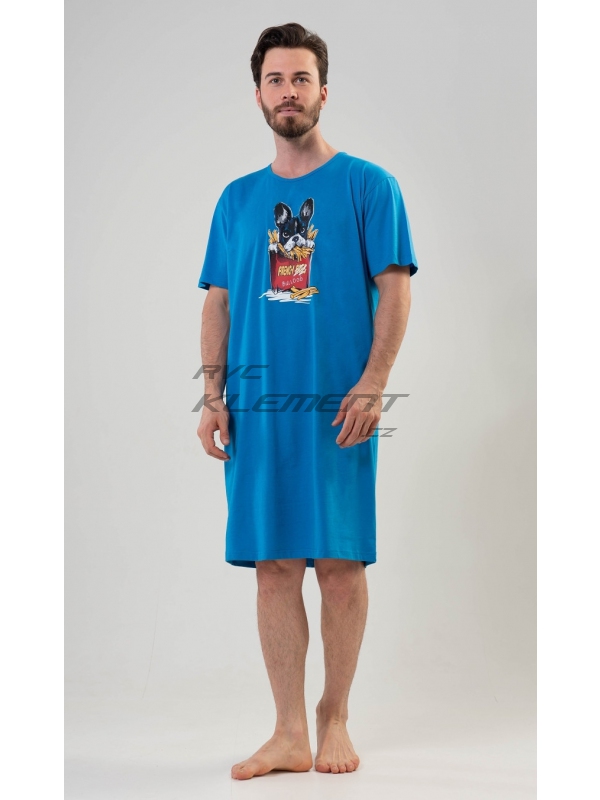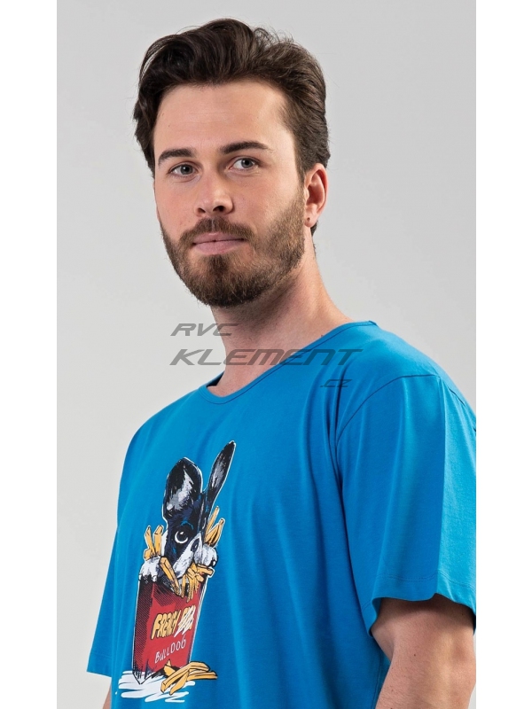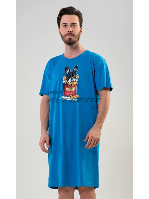 Pánská noční košile s krátkým rukávem Bulldog. Pánská noční košile s krátkým rukávem Bulldog. Pánská noční košile s obrázkem Bulldoga v hranolkách je určena pro všechny milovníky pohodlí. Použitý materiál je jemný a poddajný na dotek. Obsah bavlny je 100%. Pokyny pro údržbu: - 100% bavlna Míry naměřené na výrobku:
