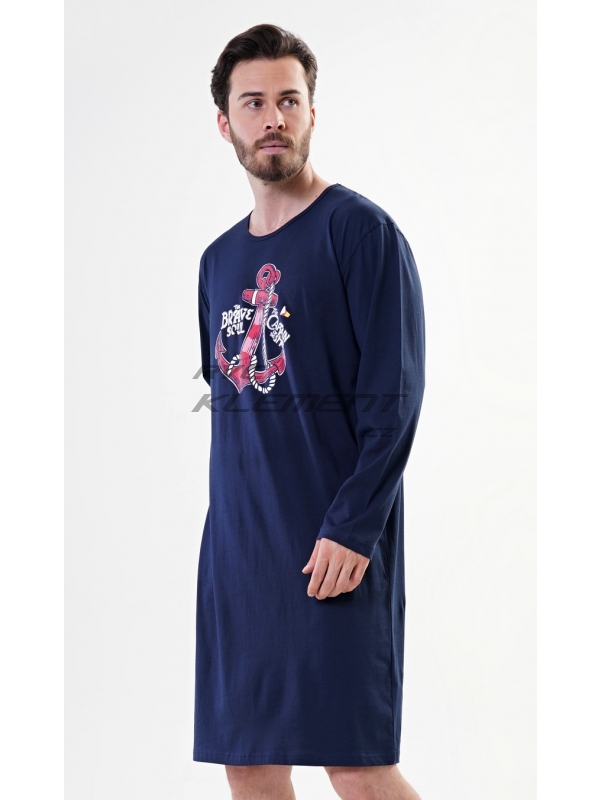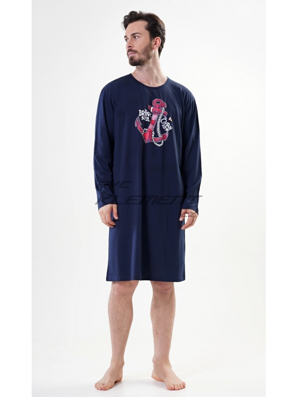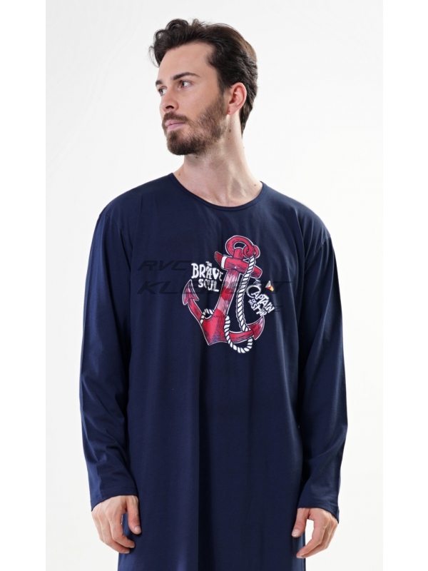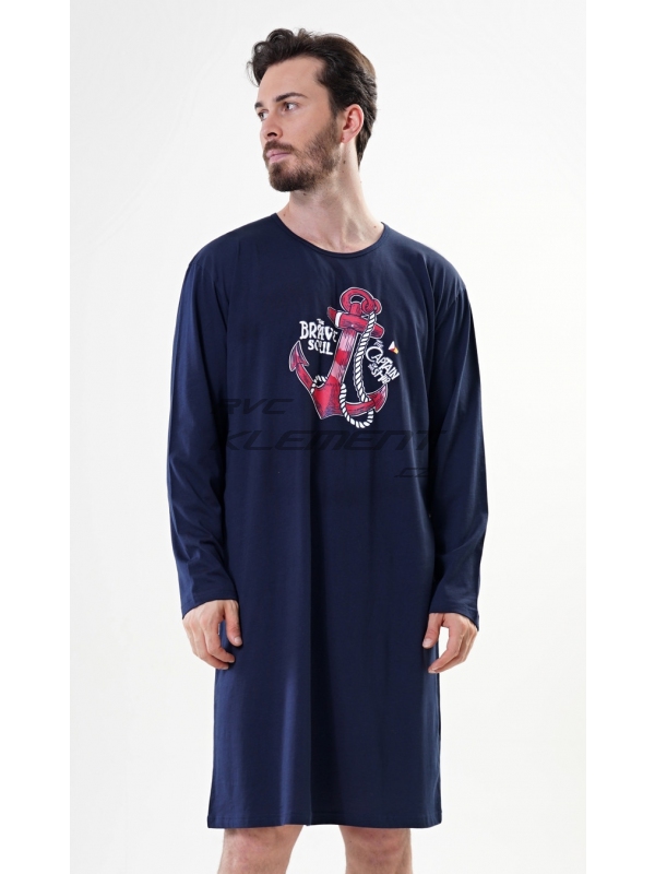 Pánská noční košile s dlouhým rukávem Kotva. Pánská bavlněná noční košile s dlouhým rukávem Kotva. Pánská noční košile s dlouhým rukávem má na hrudi výrazný obrázek kotvy. Použitý bavlněný materiál je příjemný a poddajný na dotek. Pokyny pro údržbu: - 100% bavlna Míry naměřené na výrobku