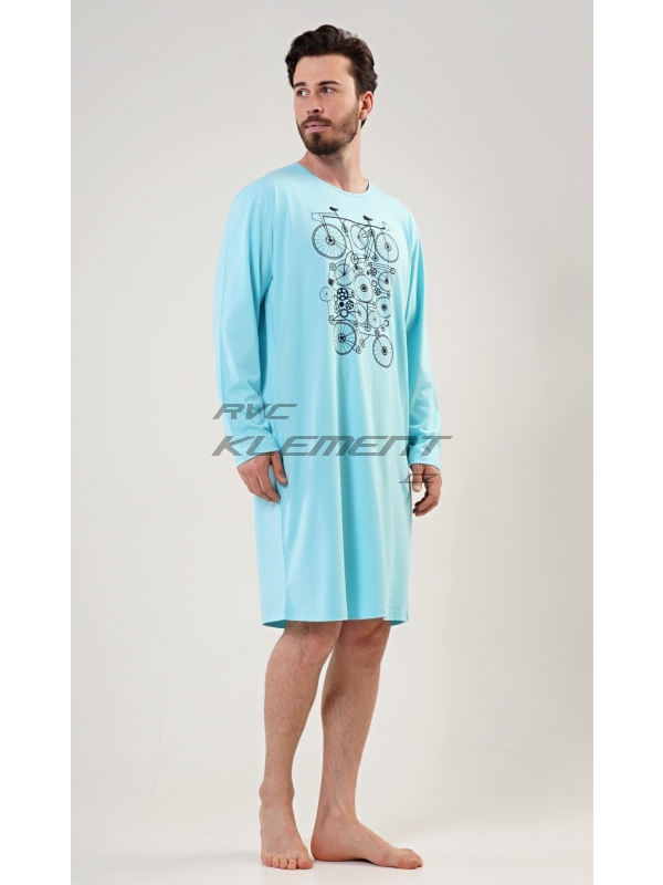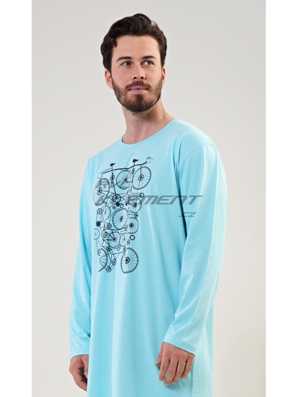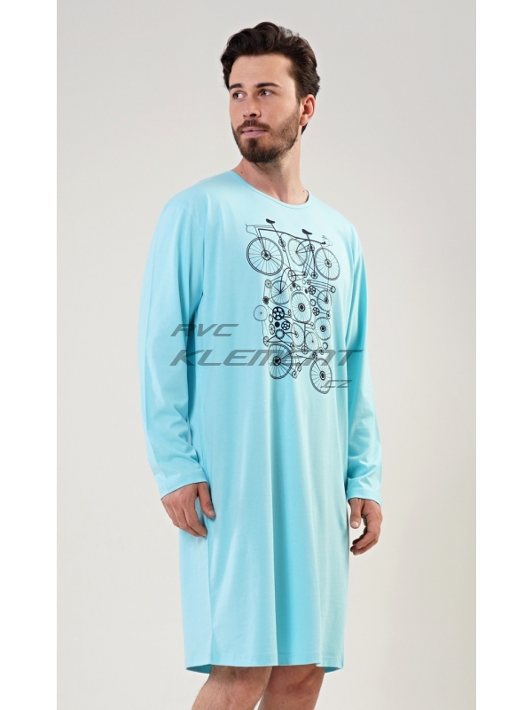 Pánská noční košile s dlouhým rukávem Kolo. Pánská bavlněná noční košile s dlouhým rukávem Kolo. Pánská noční košile s kulatým výstřihem má na hrudi obrázek několika propletených kol. Použitý materiál s obsahem bavlny 100% je příjemný a poddajný na dotek. Pokyny pro údržbu: - 100% bavlna Míry naměřené na výrobku:
