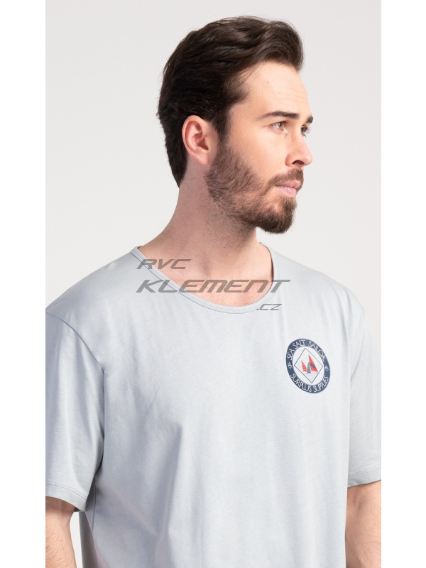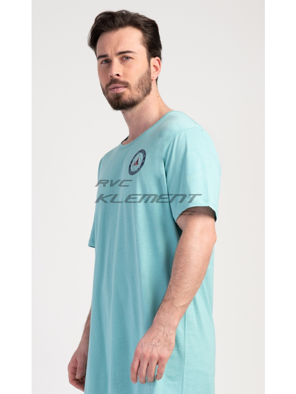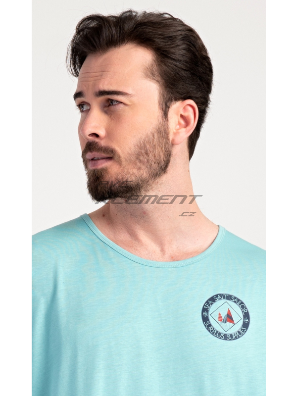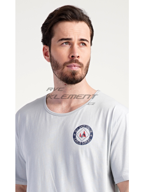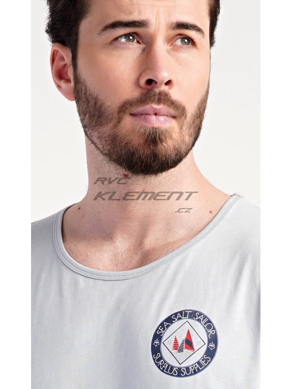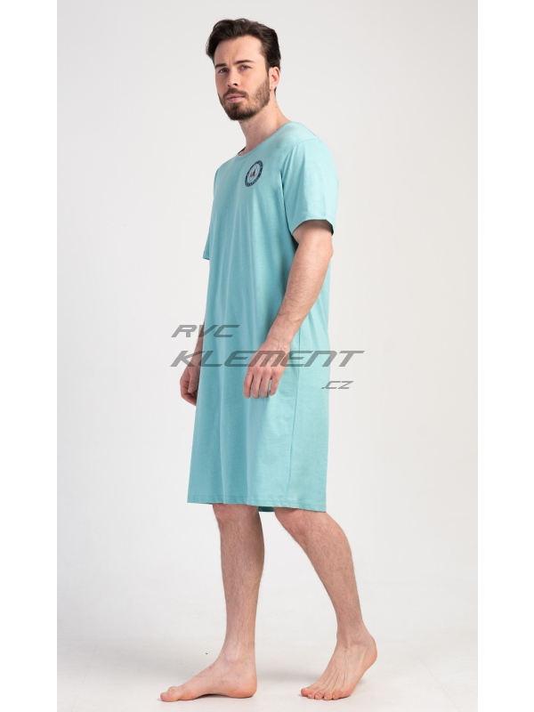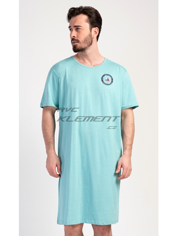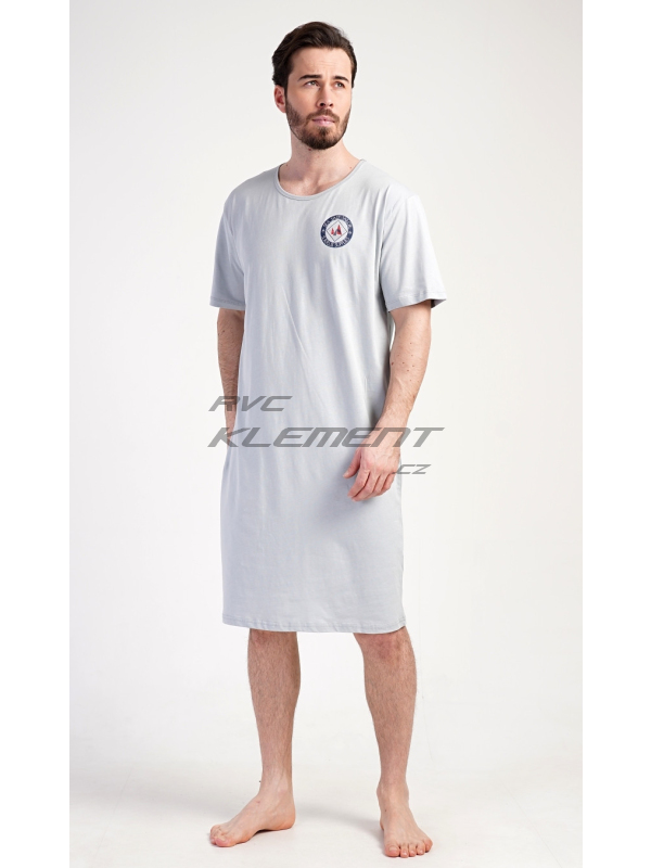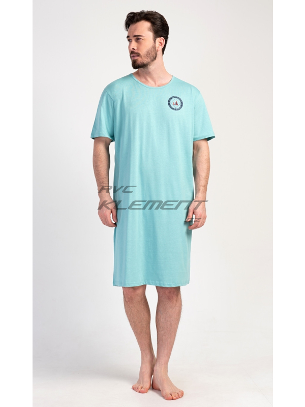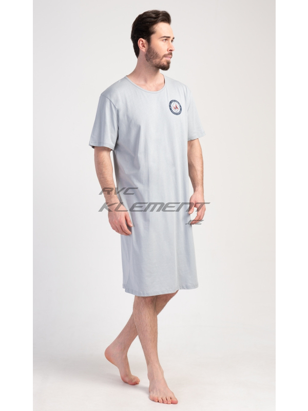 Pánská noční košile s krátkým rukávem Sea. Pánská bavlněná noční košile s krátkým rukávem Sea. Jednobarevná pánská noční košile s kulatým výstřihem a délkou po kolena je zdobena decentním obrázkem s námořnickým motivem. Použitý materiál je příjemný a poddajný na dotek. Obsah bavlny je 100%. Pokyny pro údržbu: - 100% bavlna Míry naměřené na výrobku: