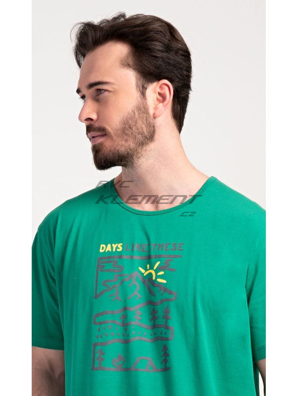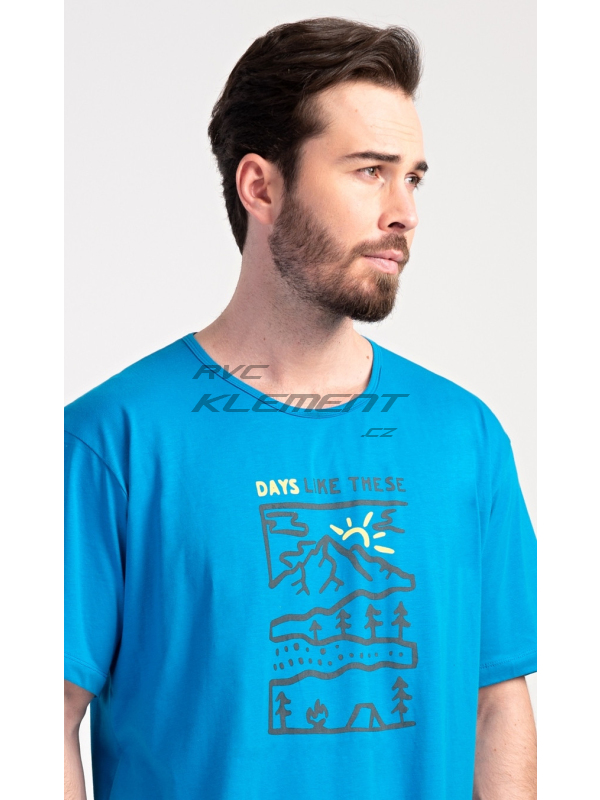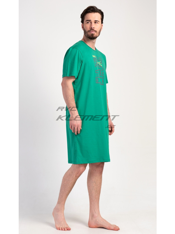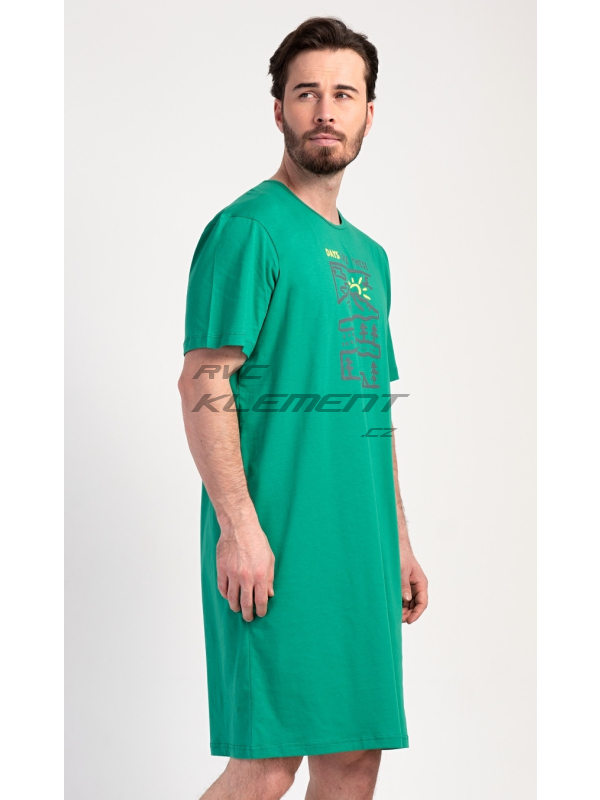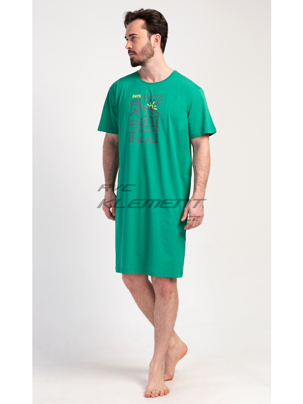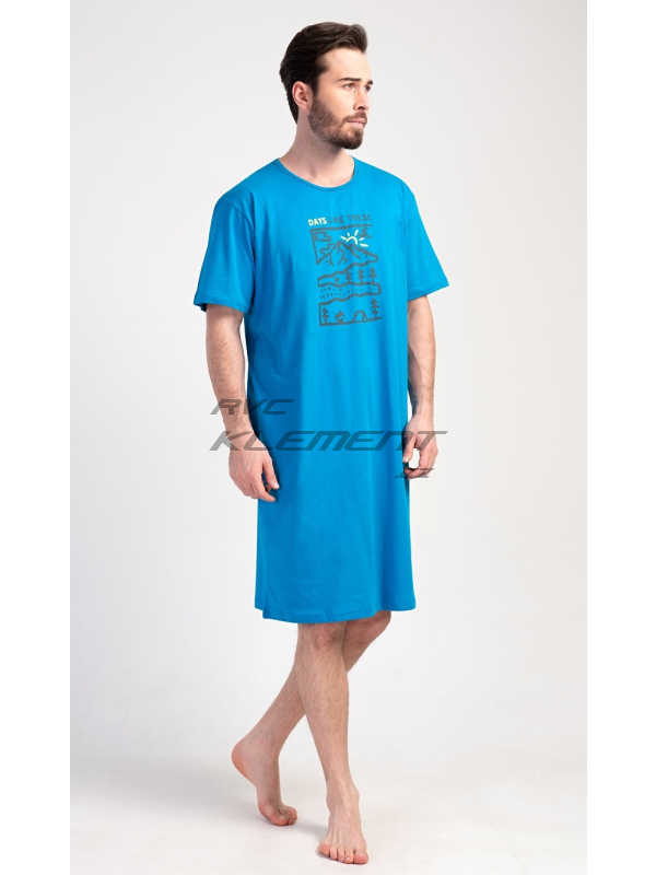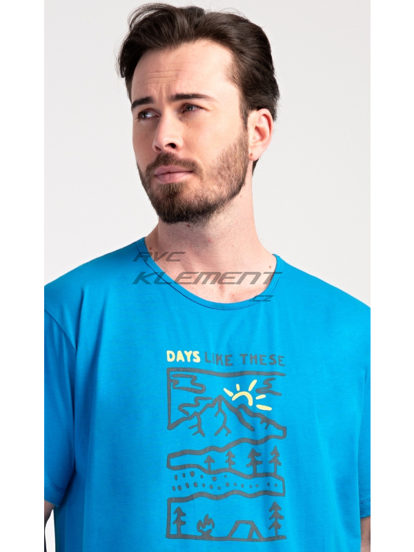 Pánská noční košile s krátkým rukávem Outdoor. Pánská bavlněná noční košile s krátkým rukávem Outdoor. Jednobarevná pánská noční košile s kulatým výstřihem má na hrudi obrázek lesnaté krajiny a nápis ’Days like these’. Tato košile je vhodným dárkem pro všechny milovníky turistiky. Použitý materiál je příjemný a poddajný na dotek. Obsah bavlny je 100%. Pokyny pro údržbu: - 100% bavlna Míry naměřené na výrobku: