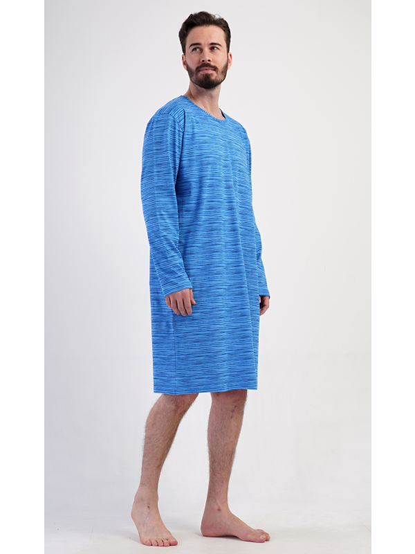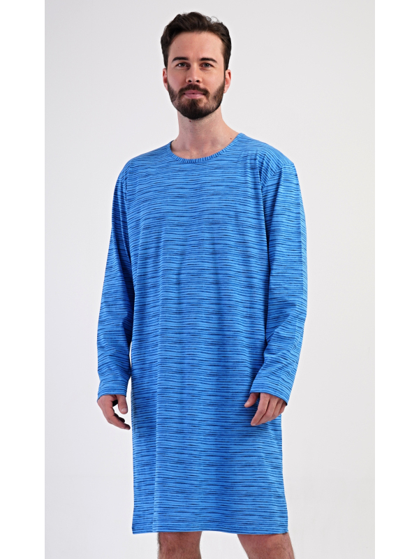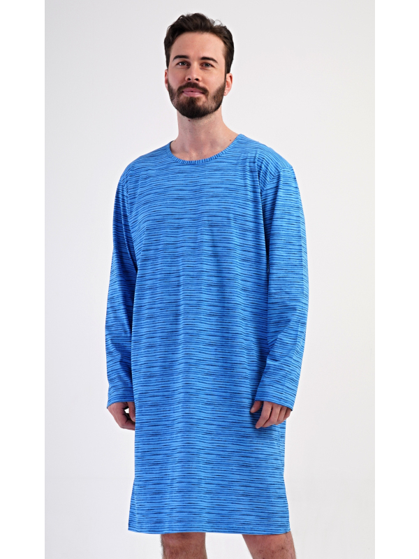 Pánská bavlněná noční košile s dlouhým rukávem Sebastian. Noční košili s kulatým výstřihem a délkou po kolena zdobí jemné proužky. Je vhodným dárkem pro všechny milovníky pohodlného spaní. Použitý materiál s obsahem bavlny 100% je příjemný a poddajný na dotek.