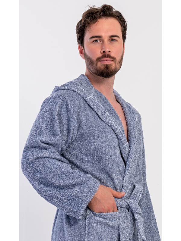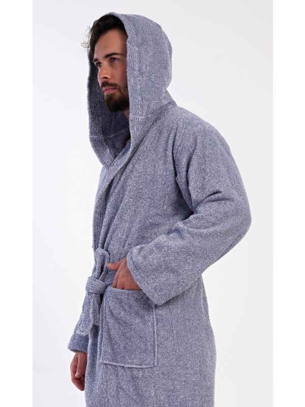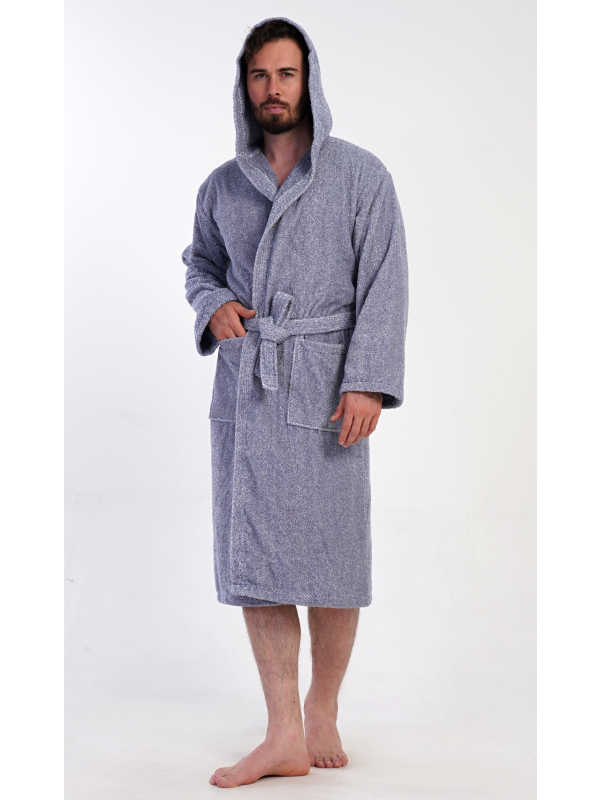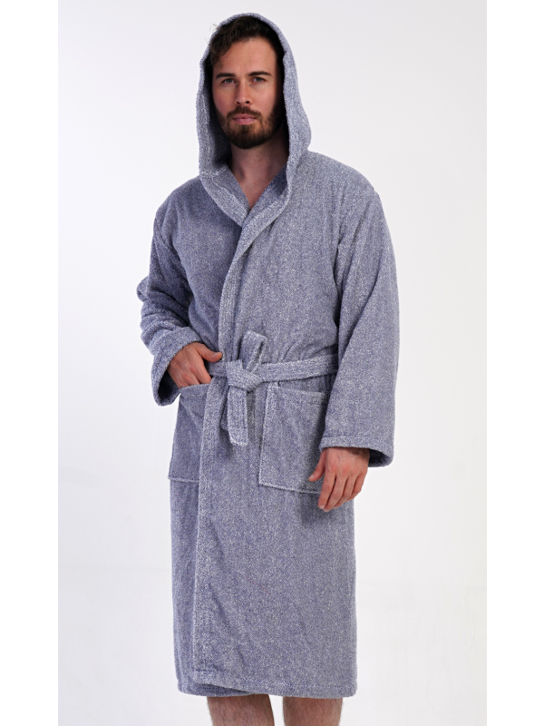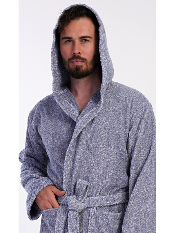 Pánský bavlněný froté župan s kapucí Luis. Pánský dlouhý župan s kapucí a páskem ke stažení je vhodný po koupeli i na povalování se doma na gauči. Froté župan má praktické kapsy, které oceníte při návštěvě wellness. Použitý bavlněný materiál je příjemný a poddajný na dotek.
