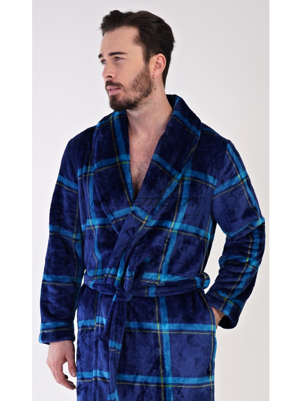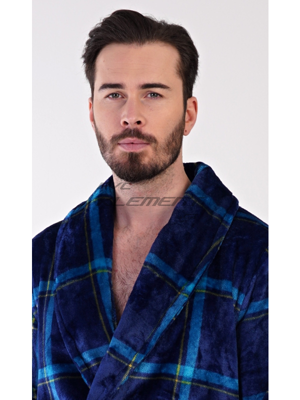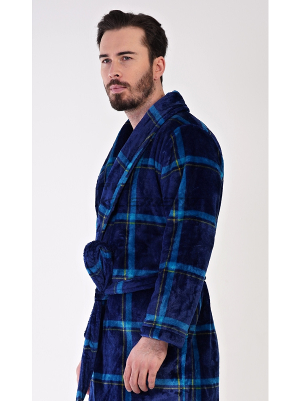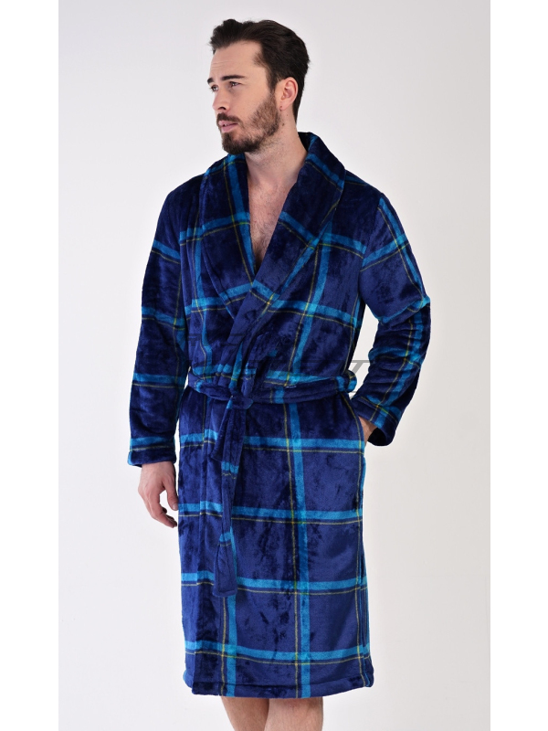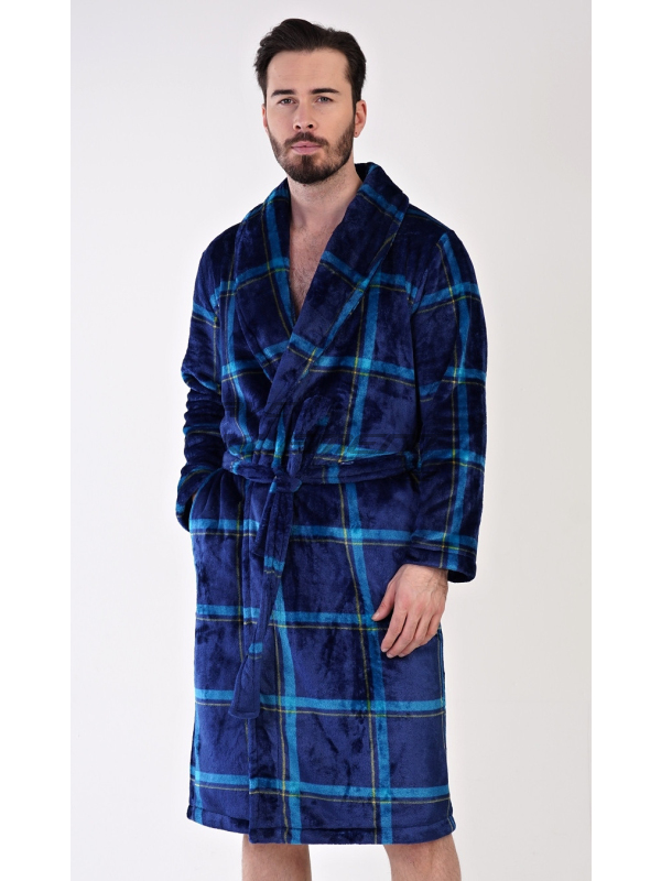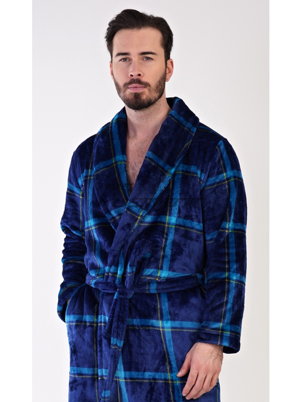 Pánský župan se šálovým límcem Richard. Pánský softový župan se šálovým límcem Richard. Župan má šálový límec, praktické kapsy a pásek ke stažení. Je zdobený motivem kostky v odstínech modré barvy. Použitý softový materiál je jemný a poddajný na dotek. Župan Vás zahřeje cestou z koupelny i při lenošení na gauči, bude to Váš milý společník v chladných dnech. Pokyny pro údržbu: - 100% polyester Míry naměřené na výrobku: