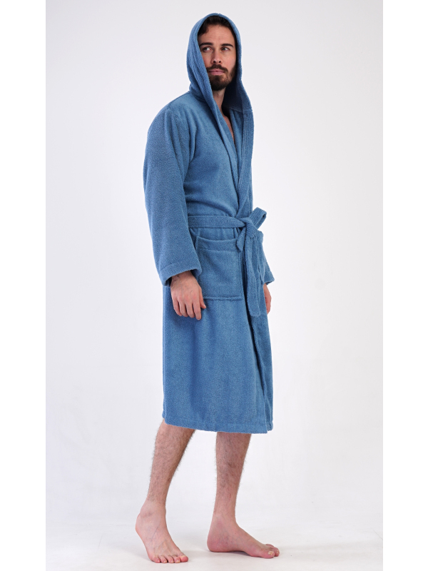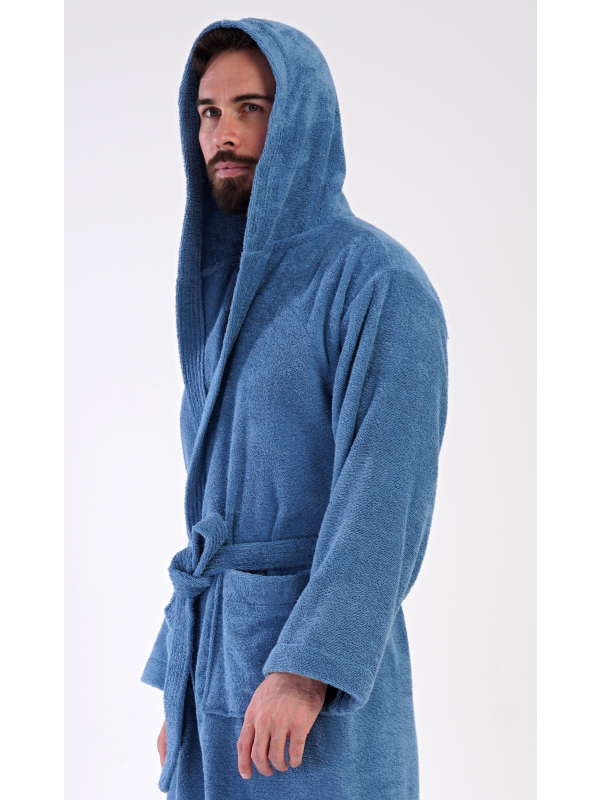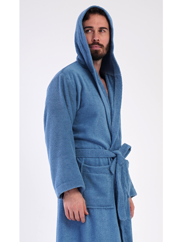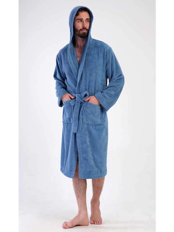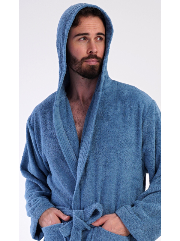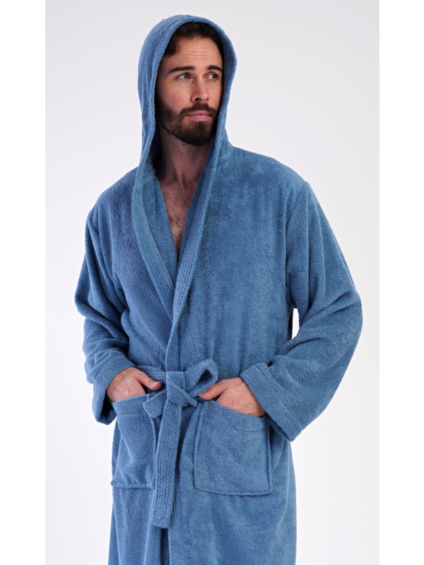 Pánský dlouhý froté župan s kapucí Albert. Pánský bavlněný froté župan s kapucí Albert. Pánský dlouhý župan s kapucí a páskem ke stažení je vhodný po koupeli i na povalování se doma na gauči. Froté župan má praktické kapsy, které oceníte při návštěvě wellness. Použitý bavlněný materiál je příjemný a poddajný na dotek. Pokyny pro údržbu: - 100% bavlna Míry naměřené na výrobku: