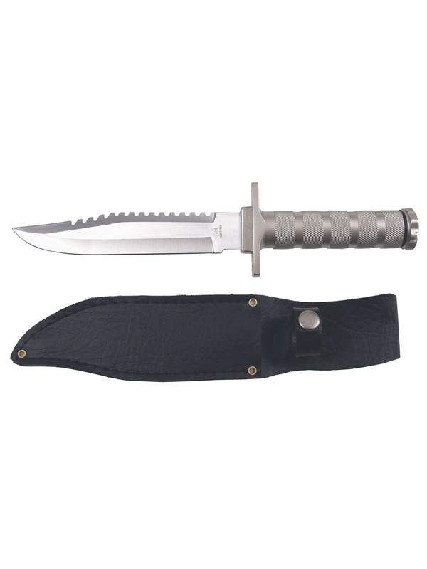 Survival nůž o celkové délce 30 cm s čepelí dlouhou 17cm, v rukojeti nože je výbava pro přežití. | ||