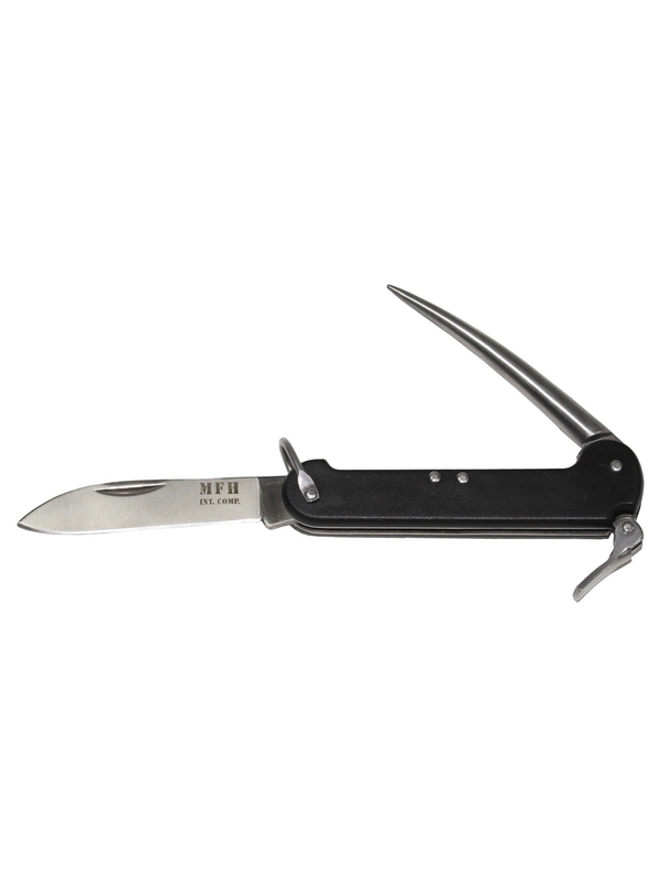 BW námořní kapesní nůž, černý Marlin spike. Zavřený nůž o délce 8 cm s jistícím kroužkem na krk. Otevřená délka: 19 cm, čepel: 8 cm. | ||