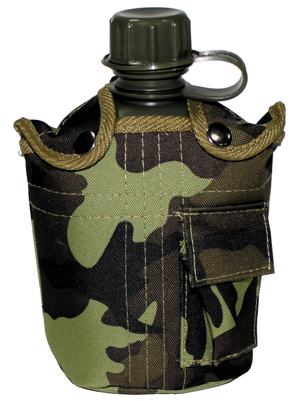 US plastová láhev v nylonovém krytu v designu maskování CZ tarn, obsah 1 l. | ||