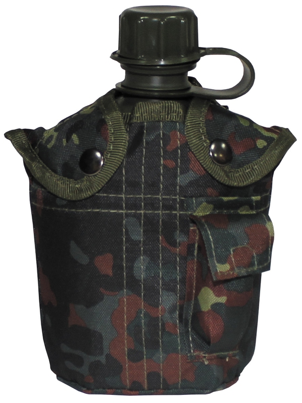 US plastová butela v nylonovém obalu v designu flecktarn. Litrová láhev má na krytě malou vnější kapsu a dva držáky pro uchycení na batoh nebo opasek. | ||