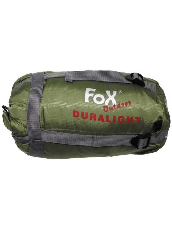 Spací pytel "Duralight" v  olivově černé barvě s kompresním obalem do teploty: 02 ° C - +18 ° C, Materiál:  shell: 100% výkonu diamant ripstop 300 T, podšívka: měkká mikrovlákna 290T/50D, náplň: 150 g/m³ duralovým kopce 3D Microvláken.  Velikost: 230 x 85 x 55 cm.