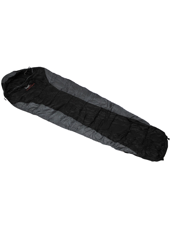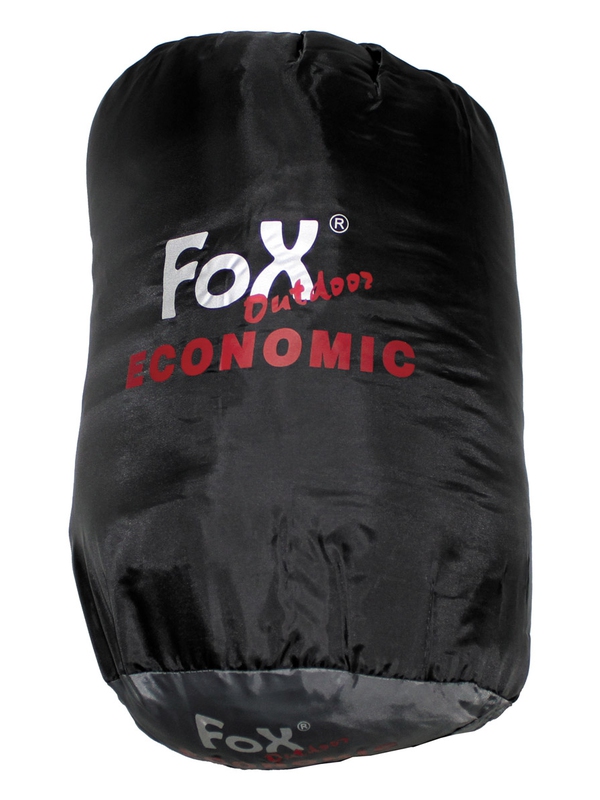 Spací pytel mumie "ECONOMIC" černo/šedý s kompresním obalem. Spacák do teploty: -4 ° C - 18 ° C. Materiál: Shell: 100% polyester 190T, podšívka: 210T mikrovlákno, náplň: 250g/m polyesterová dutá vlákna. Velikost: 220 x 80 x 55 cm.