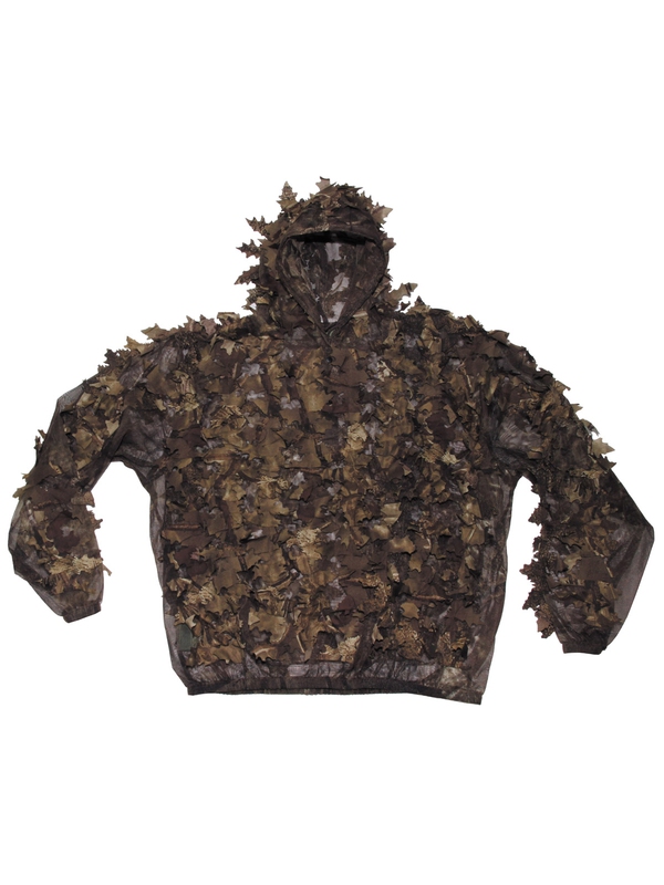 Maskovací oblek "Leaves" v novém designu lovecké hnědé je trojdílný oblek s s maskováním listí sestávají ze třech kusů - bundym kalhoty a kukly. Bundy má stahovací šňůrku na kapuci, pružný pas a manžety, kalhoty jsou elastické v pase a u kotníků a kukla balaclava se skládací sítí proti komárům, materiál: 65% polyester, 35% bavlna. | ||
