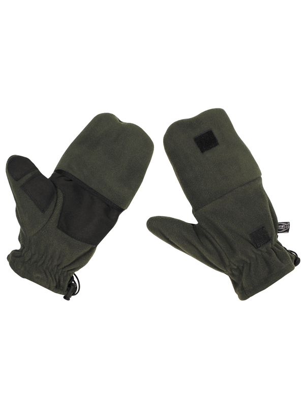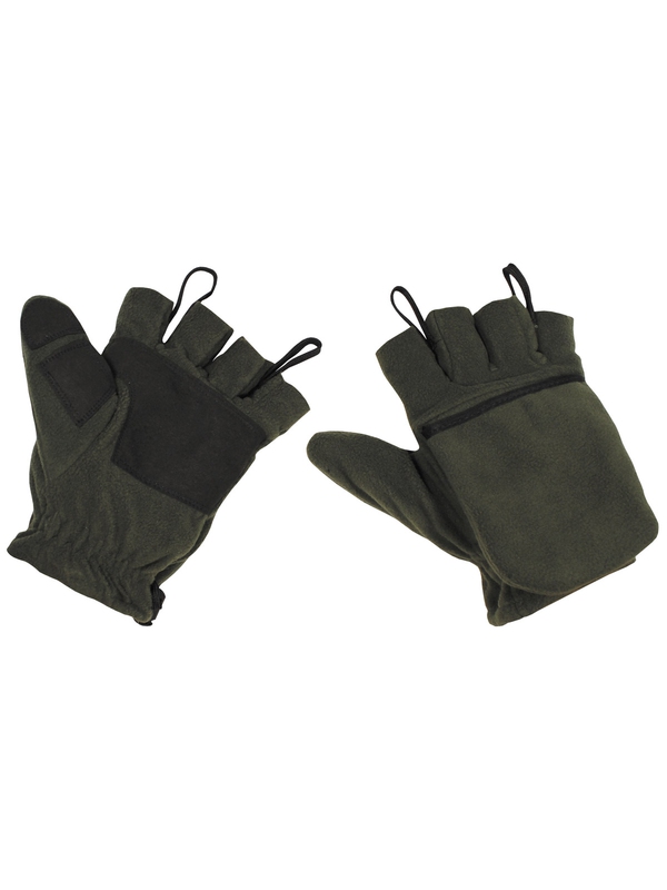 Flísové rukavice 3v1 - palčáky, bezprsté a prstové rukavice v jednom v olivové barvě.
