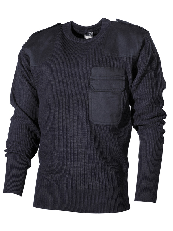 Modrá BW mikina přes hlavu s kapsou na prsou, předloktí a ramena vyztužené plátnem, materiál: 100% akryl.