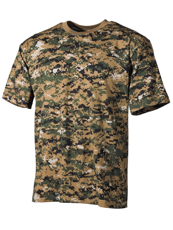 US armádní tričko, zesílené, krátký rukáv, nový vzor maskování - digital woodland, 170 g / m². Klasické army tričko, zesílení u krku. Materiál: 100% bavlna. | ||