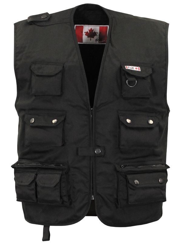 Sportovní vesta v černé barvě. Multifunkční outdoorová vesta ideální pro hobby, rybolov, lov či pěší turistiku, s mnoha kapsami. Materiál: 65% polyester, 35% bavlna. | ||