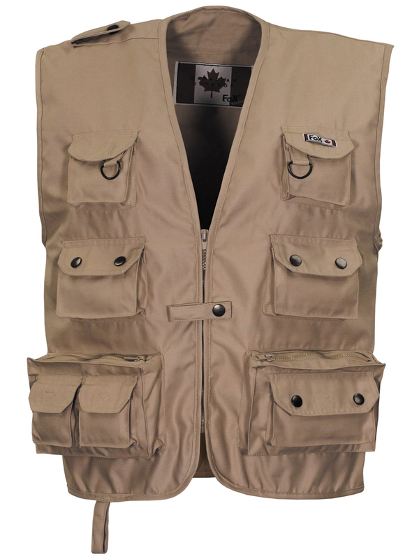 Sportovní vesta v khaki barvě. Multifunkční outdoorová vesta ideální pro hobby, rybolov, lov či pěší turistiku, s mnoha kapsami. Materiál: 65% polyester, 35% bavlna. | ||