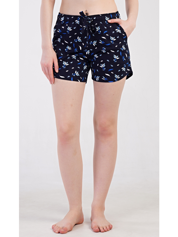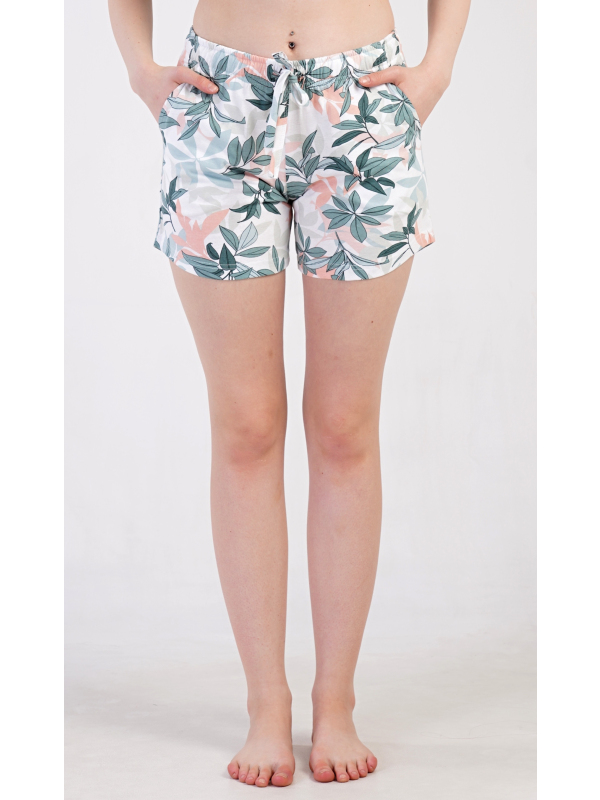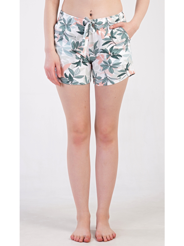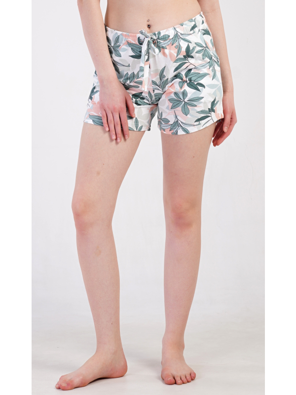 Dámské pyžamové šortky Listy. Dámské bavlněné pyžamové šortky Listy. Pyžamové krátké kalhoty jsou zdobeny potiskem listů. Mají v pase gumu, šňůrku na stažení a praktické kapsy. Použitý bavlněný materiál je příjemný a poddajný na dotek. Pokyny pro údržbu: - 100% bavlna Míry naměřené na výrobku: