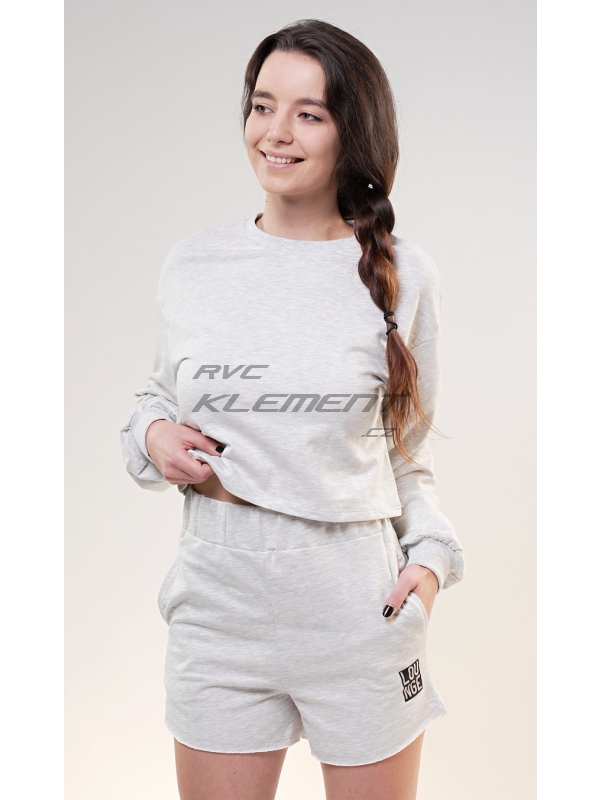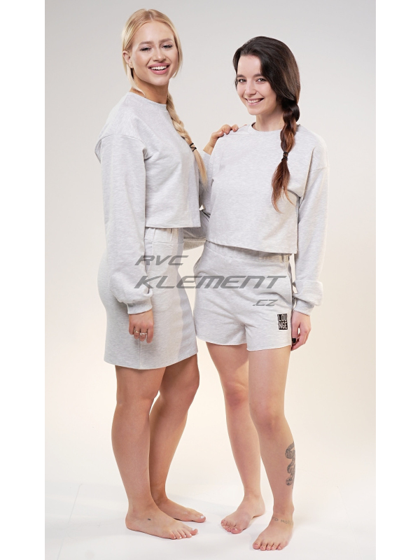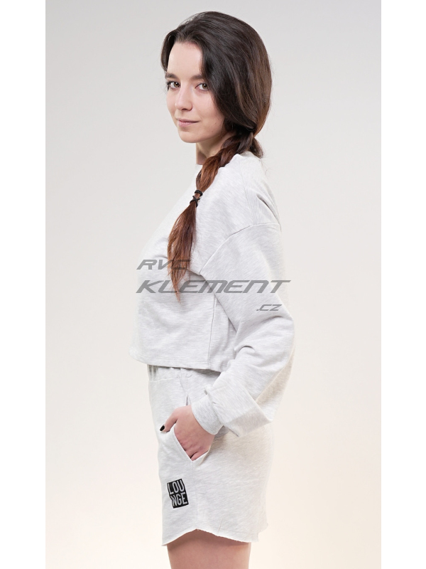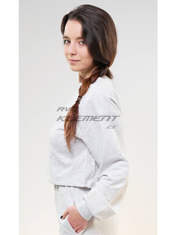 Dámská mikina Denisa. Dámská mikina Denisa. Světle šedá mikina má kulatý výstřih, rukávy zakončené panty a moderní zkrácenou délku. Použitý materiál s vysokým obsahem bavlny je příjemný a poddajný na dotek. Mikina je pohodlná a využijete ji téměř při všech volnočasových aktivitách. | ||||||