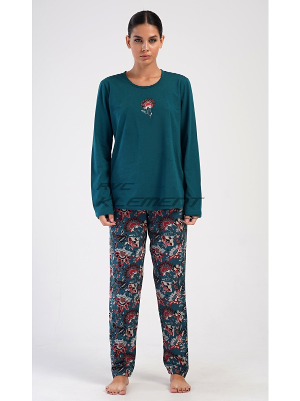 Dámské dlouhé pyžamo Nature.Dámské bavlněné dlouhé pyžamo Nature. Dámské pyžamo se skládá ...