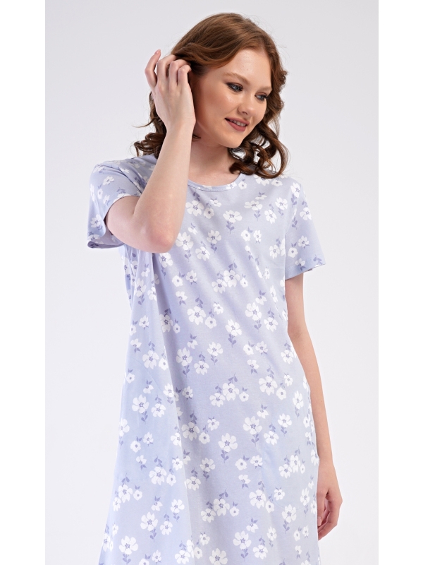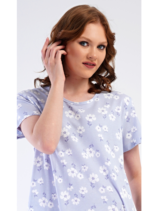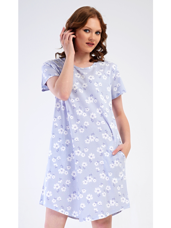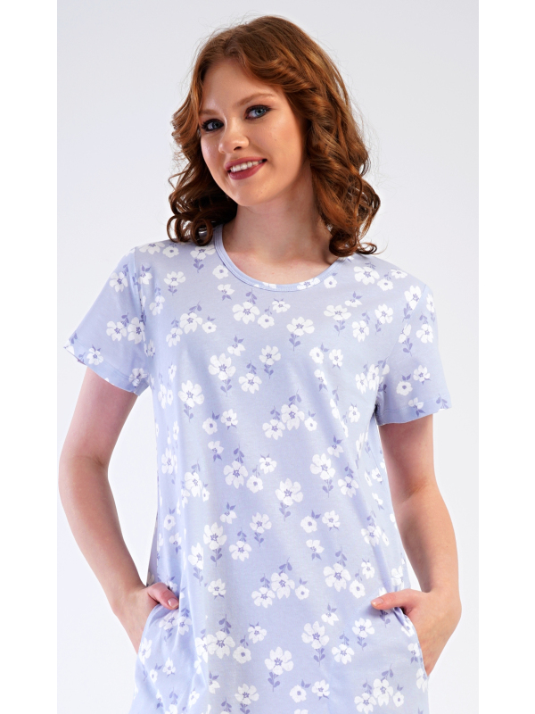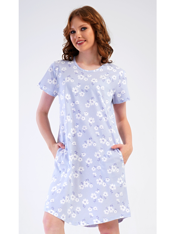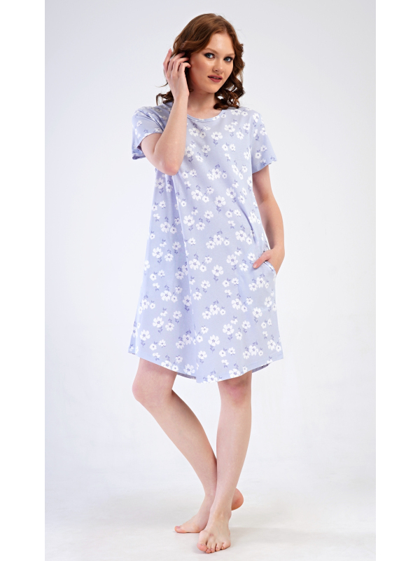 Dámské domácí šaty s krátkým rukávem Nature lover. Dámské bavlněné domácí šaty s krátkým rukávem Nature lover. Domácí jednobarevné šaty s kulatým výstřihem a kapsami zdobí jemné bílé květy. Použitý bavlněný materiál je příjemný a poddajný na dotek. Šaty jsou pohodlné, vhodné na spaní i na denní nošení. Pokyny pro údržbu: -100 % bavlna Míry naměřené na výrobku: