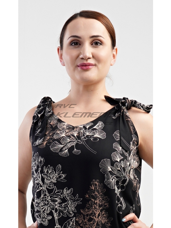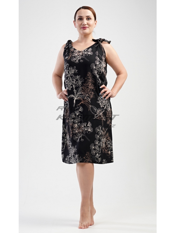 Dámské domácí šaty Kate. Dámské domácí šaty Kate. Dámské šaty s florálním potiskem na tmavém podkladu mají příjemnou délku ke kolenům a zajímavé zavazování ramínek. Použitý materiál je příjemný na dotek. Šaty jsou univerzální - vhodné na doma, na pláž a ostudu si s nimi neuděláte ani v kanceláři. Pokyny pro údržbu: - 100% bavlna Míry naměřené na výrobku: