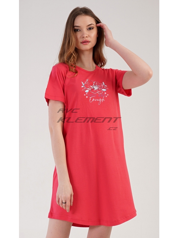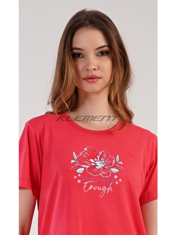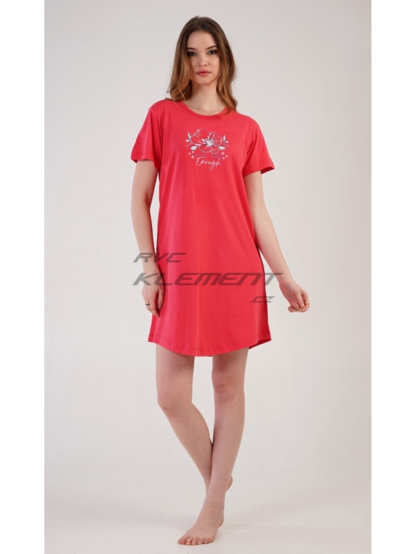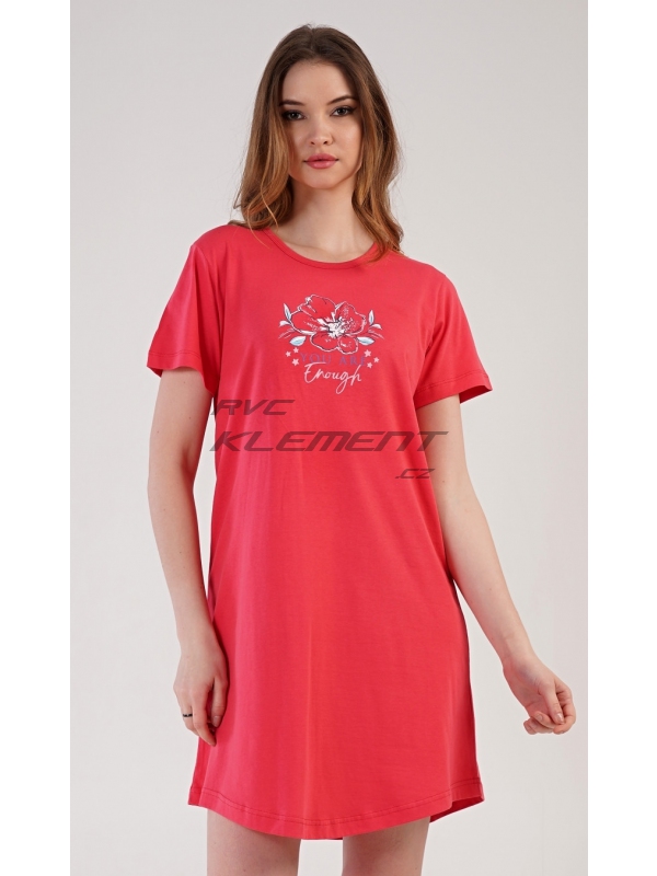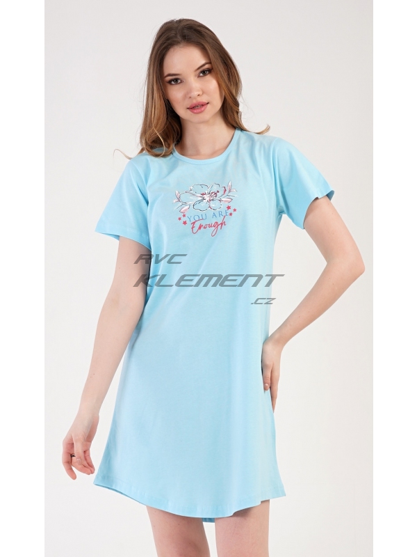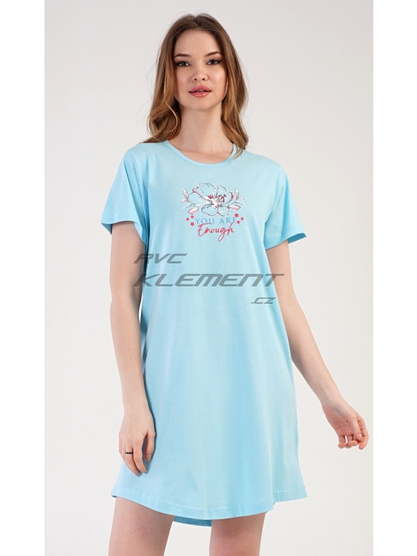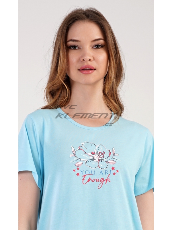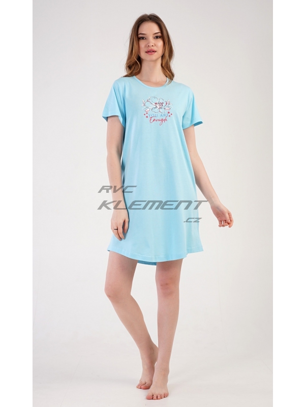 Dámská bavlněná noční košile s krátkým rukávem Eliška. Dámská bavlněná noční košile s krátkým rukávem Eliška. Noční košile s kulatým výstřihem má na hrudi obrázek květu a malý nápis. Použitý bavlněný materiál je příjemný a poddajný na dotek. Pokyny pro údržbu: - 100% bavlna Míry naměřené na výrobku: