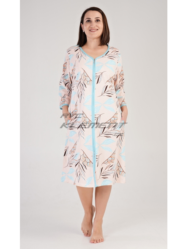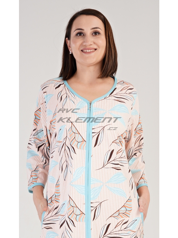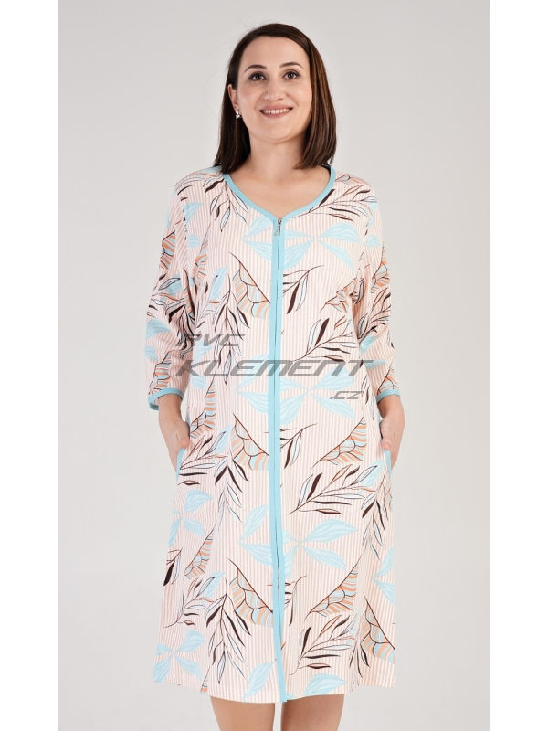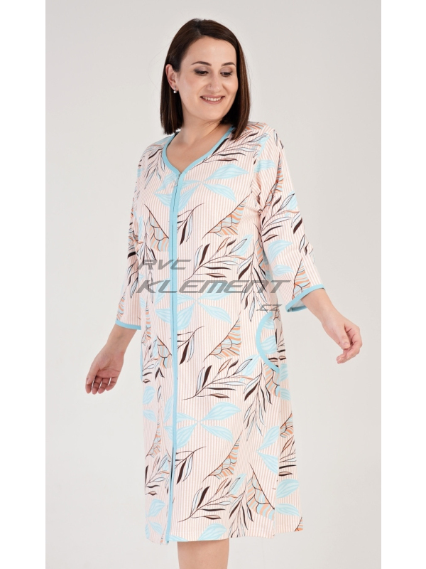 Dámské domácí šaty s tříčtvrtečním rukávem Melissa. Dámské bavlněné domácí šaty s tříčtvrtečním rukávem Melissa. Domácí šaty mají zapínání na zip a jsou ozdobeny potiskem větviček a listů. Na předním díle jsou našité kapsy ozdobené lemovkou. Bavlněný materiál je poddajný a příjemný na dotek. Pokyny pro údržbu: - 100% bavlna Míry naměřené na výrobku:
