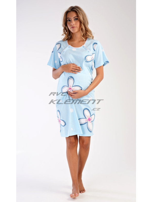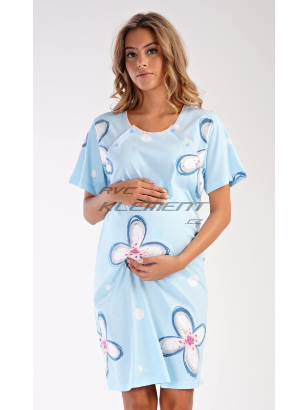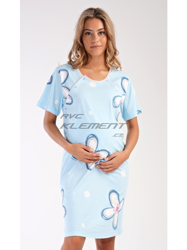 Dámská bavlněná mateřská noční košile Veronika. Dámská bavlněná mateřská noční košile Veronika. Noční košile je svým střihem určená na dobu těhotenství, do porodnice i ke kojení. Ke kojení slouží průstřihy po stranách košile, které jsou uzavíratelné na knoflíky. Košile je ozdobena potiskem velkých květů. Použitý materiál s obsahem bavlny 100% je příjemný a poddajný na dotek. Pokyny pro údržbu: - 100% bavlna Míry naměřené na výrobku: