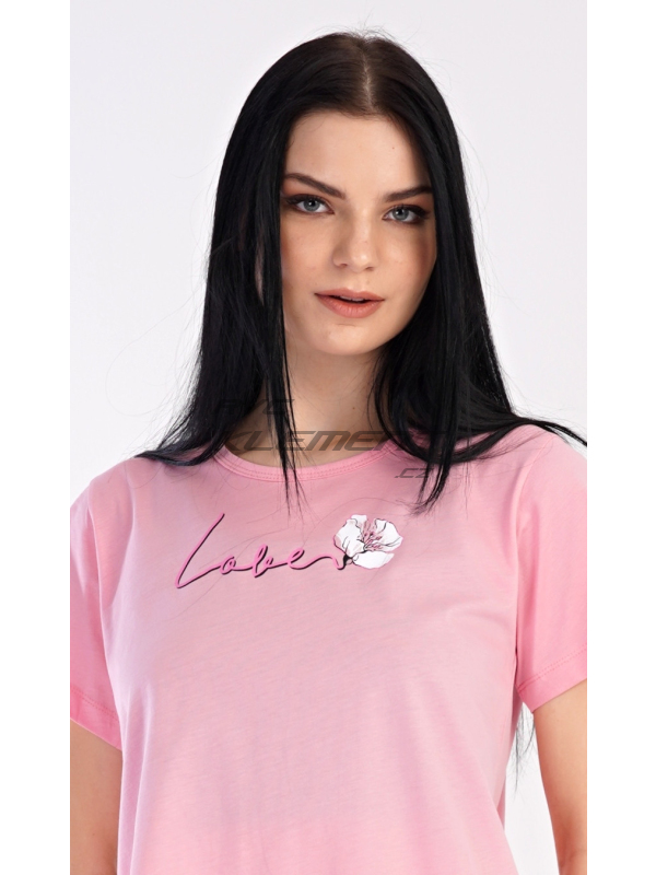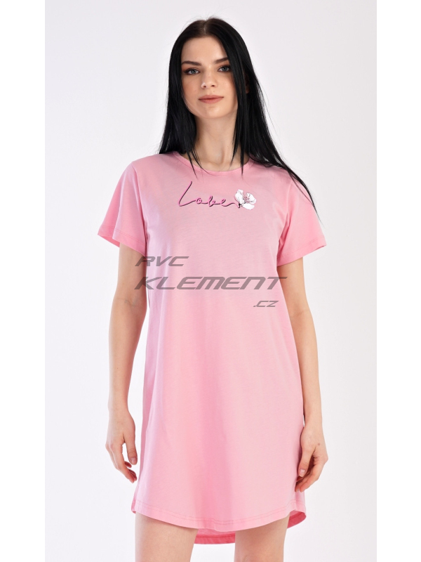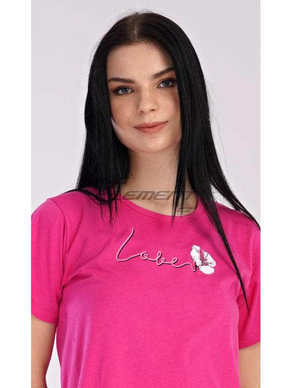 Dámská bavlněná noční košile s krátkým rukávem I love you. Dámská bavlněná noční košile s krátkým rukávem I love you. Noční košili s kulatým výstřihem zdobí obrázek květu a nápis LOVE, který zároveň tvoří stonek květu. Použitý bavlněný materiál je příjemný a poddajný na dotek. Pokyny pro údržbu: - 100% bavlna Míry naměřené na výrobku: