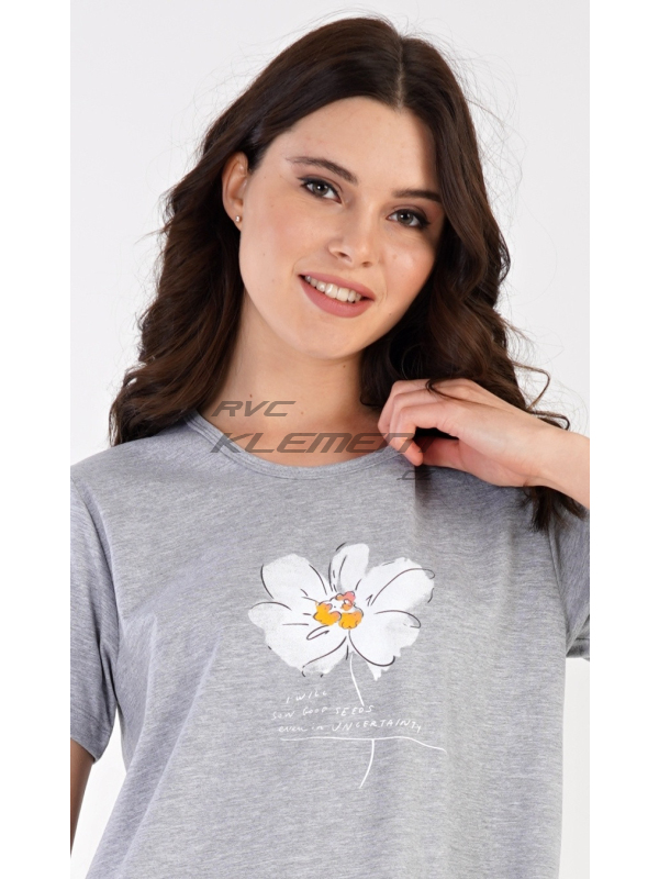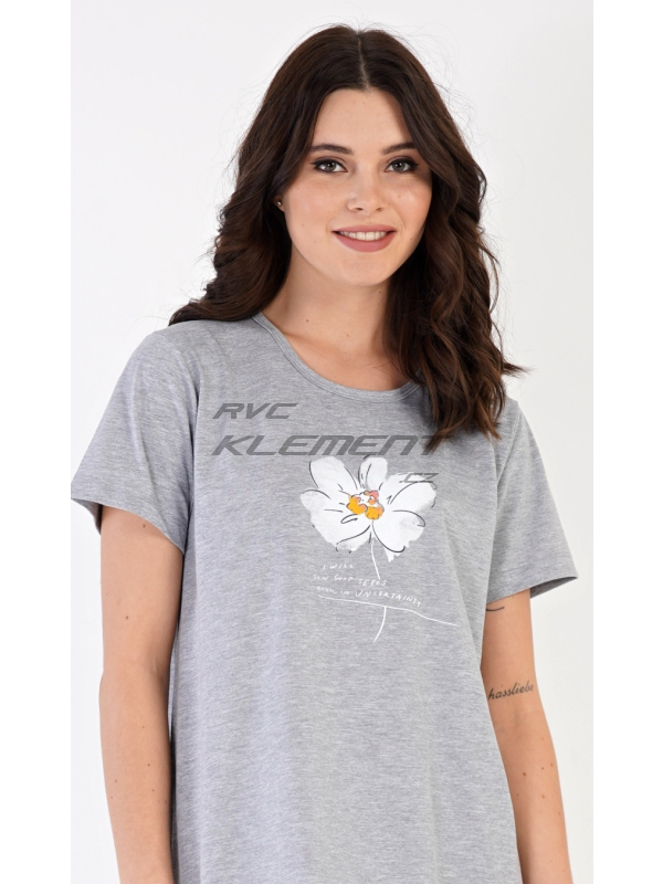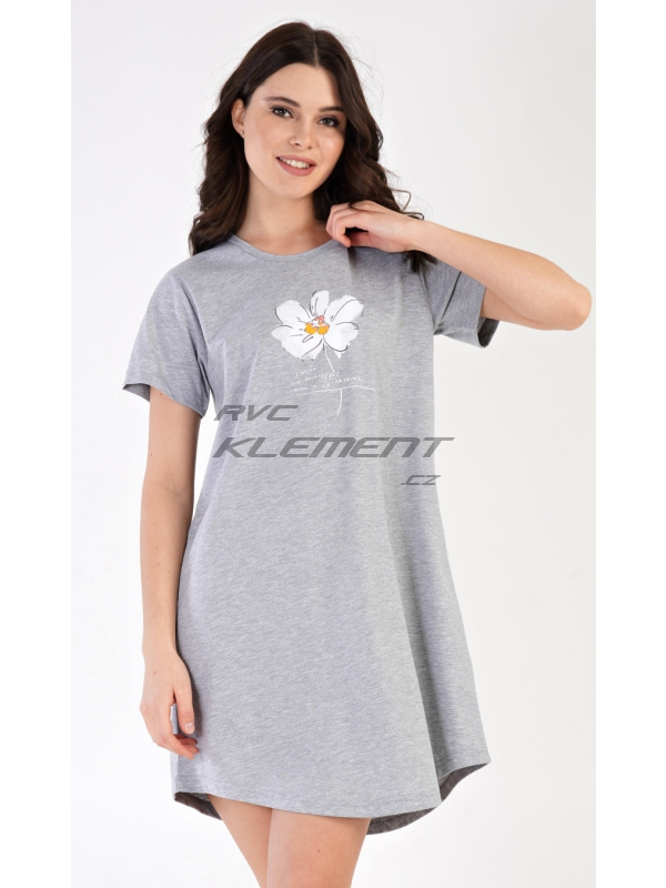 Dámská noční košile s krátkým rukávem Helena. Dámská noční košile s krátkým rukávem Helena. Noční košile s kulatým výstřihem má na hrudi obrázek květu a drobný nápis. Použitý materiál s obsahem bavlny 70% je příjemný a poddajný na dotek. Pokyny pro údržbu: -70% bavlna, 30% polyester Míry naměřené na výrobku: