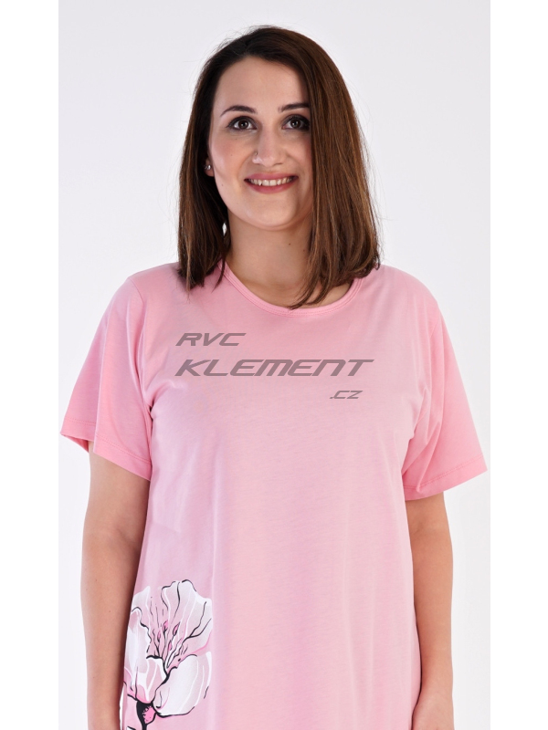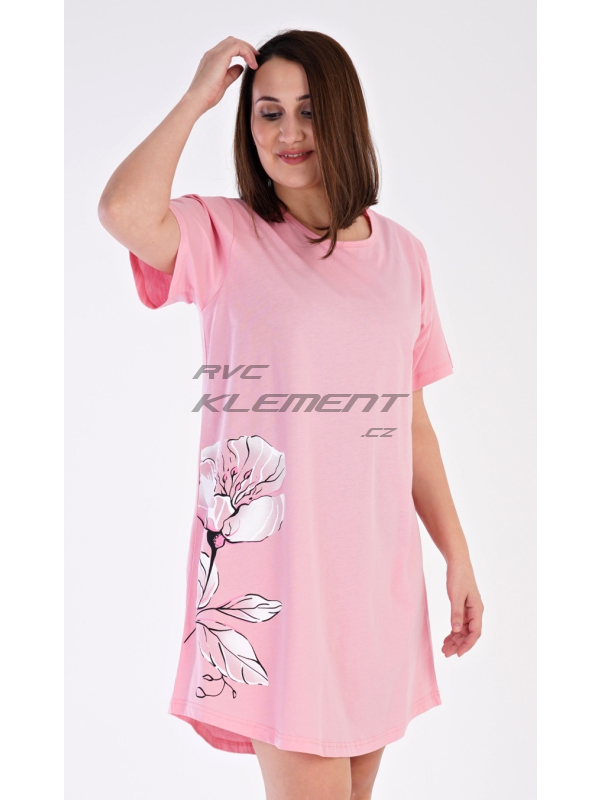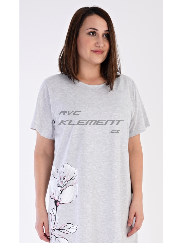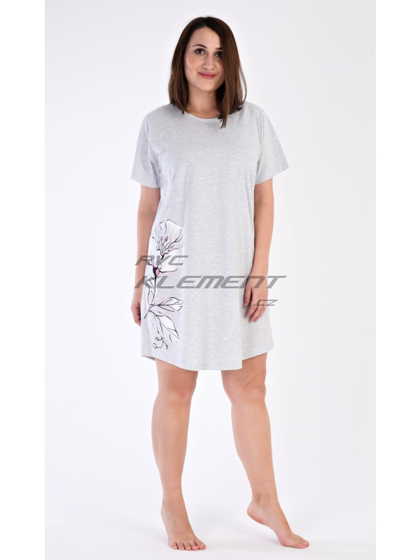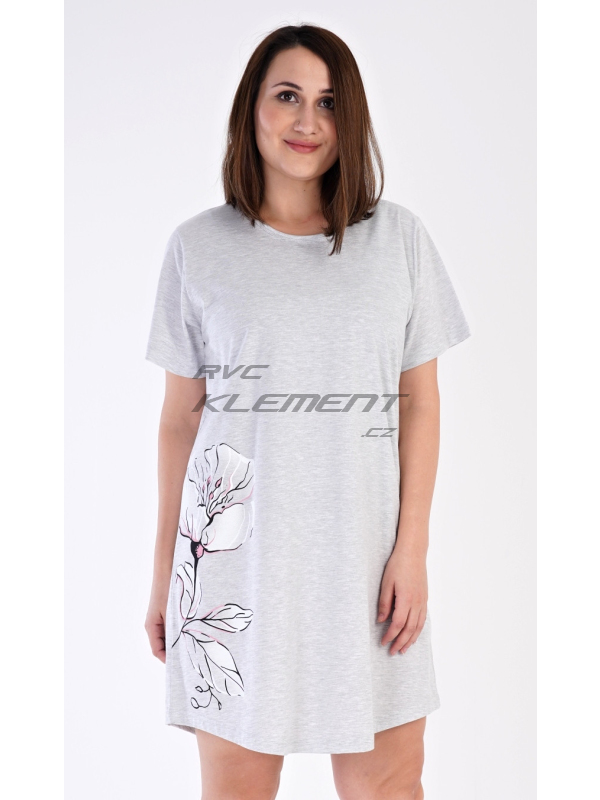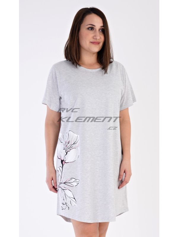 Dámská noční košile s krátkým rukávem Nicol. Dámská noční košile s krátkým rukávem Nicol. Noční košile s kulatým výstřihem má ve spodní části na boku obrázek květiny. Použitý materiál je příjemný a poddajný na dotek. Obsah bavlny u lososové barvy je 100% a u světle šedé 70%. Pokyny pro údržbu: -70% bavlna, 30% polyester Míry naměřené na výrobku: